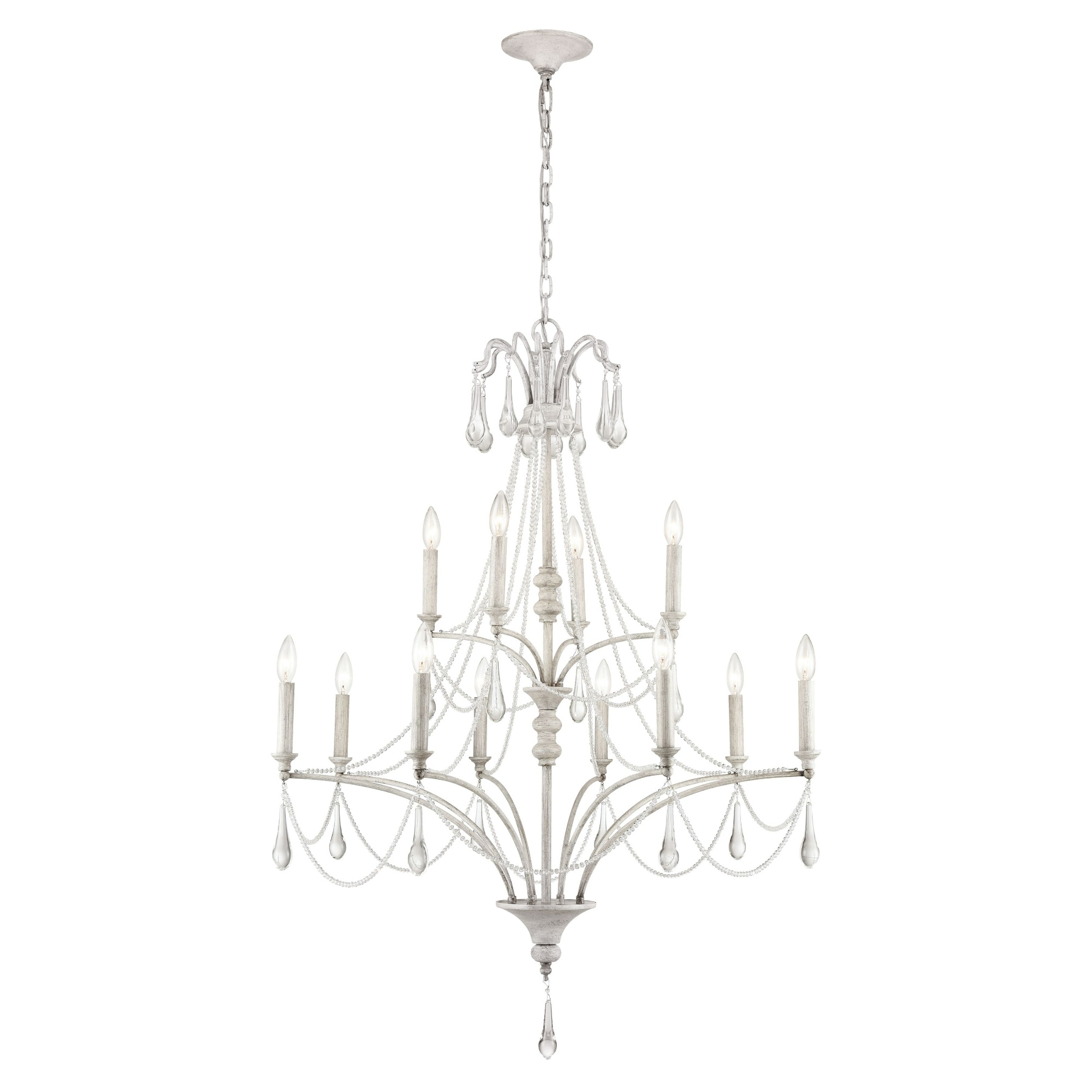 12-Light Ceiling Chandelier with Crystal Drops - 48" - White
