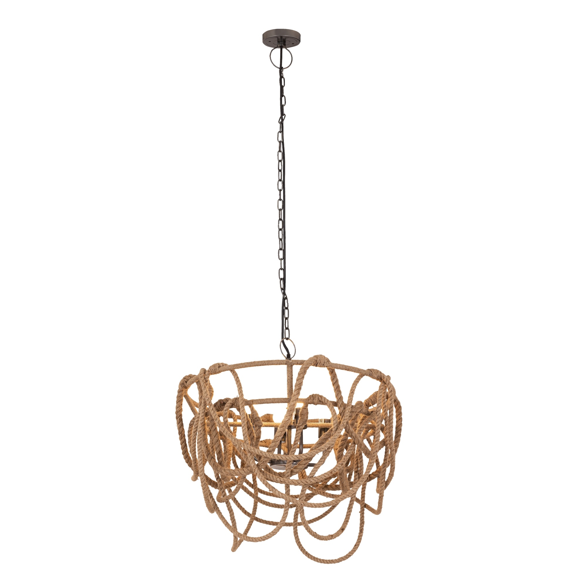 4-Light Knotted Rope Ceiling Chandelier - 26" - Brown