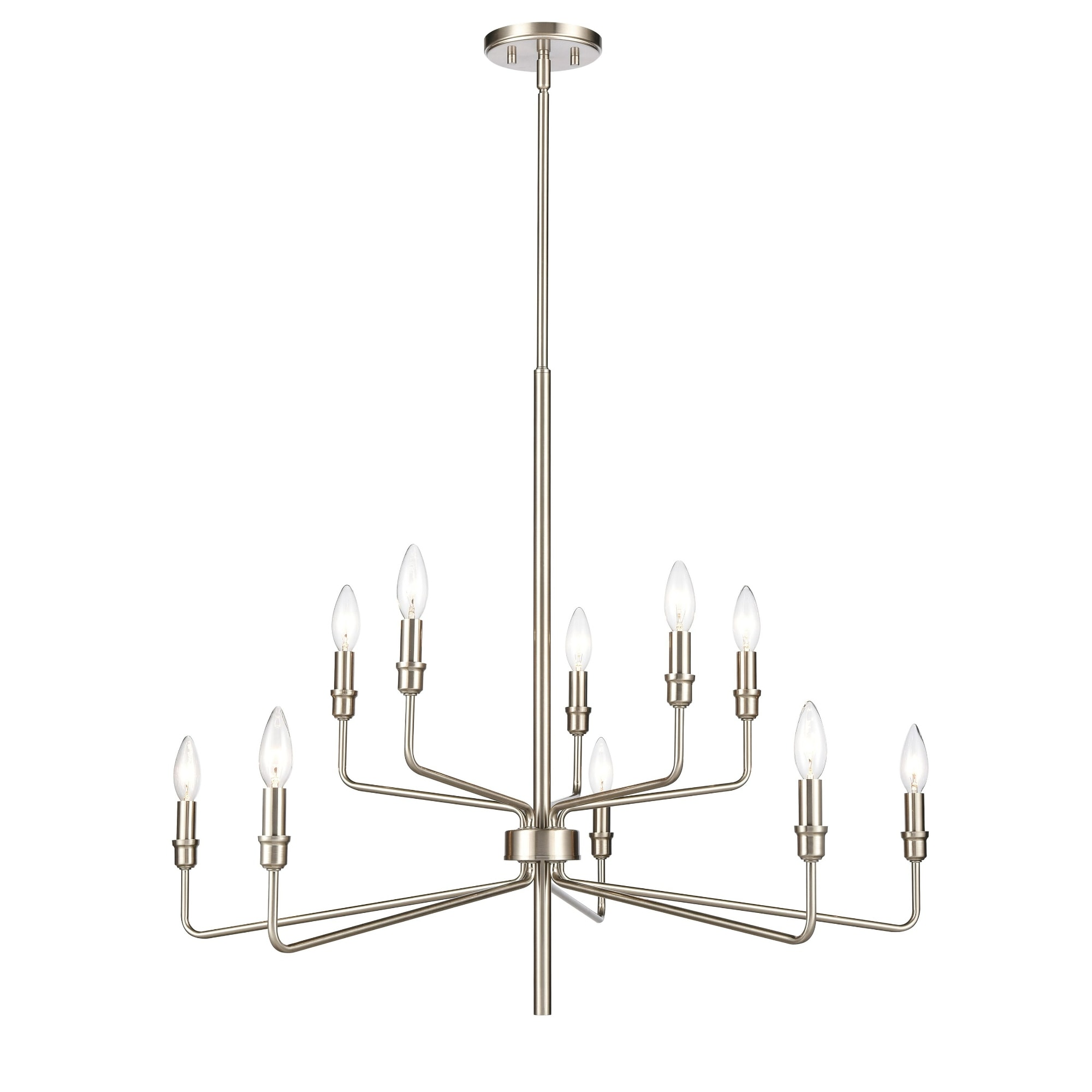 10-Light Candle Style Ceiling Chandelier - 34" - Satin Nickel