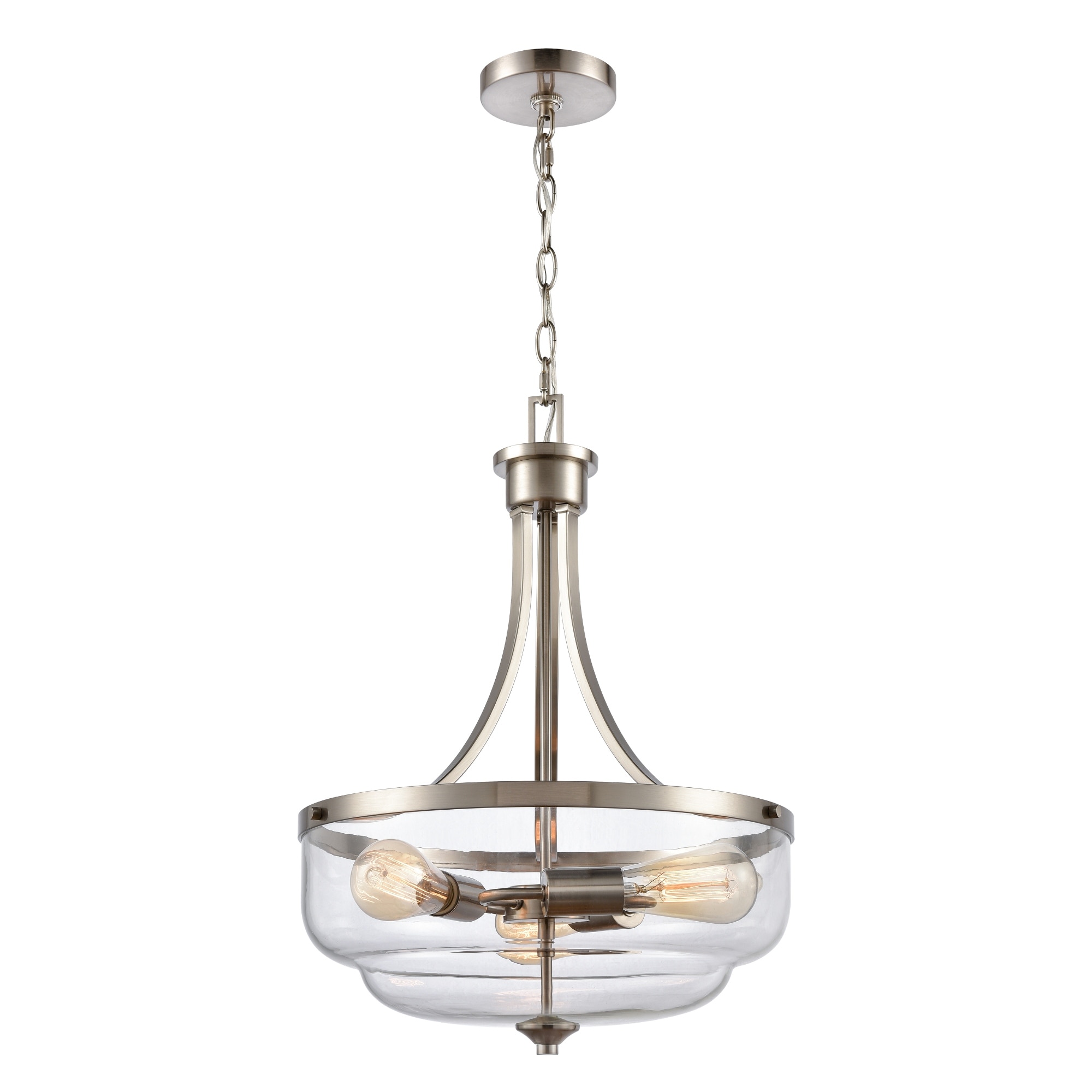 Ceiling Pendant Light Fixture with Glass Shade - 22" - Brushed Nickel Finish