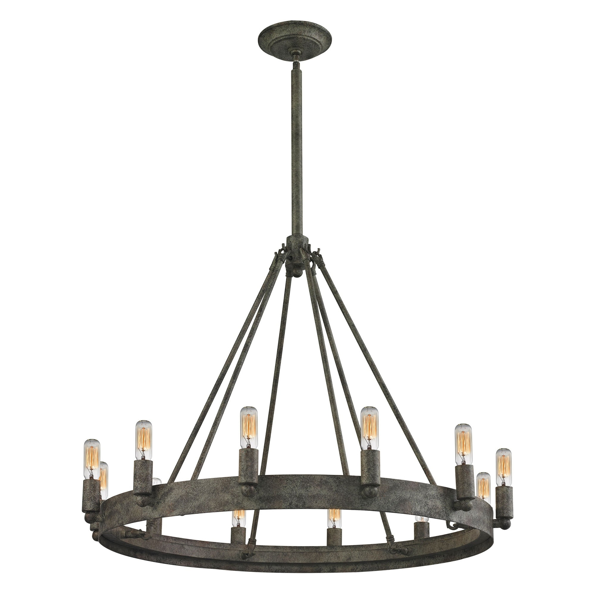 12-Light Ring Ceiling Chandelier - 27" - Malted Rust Finish