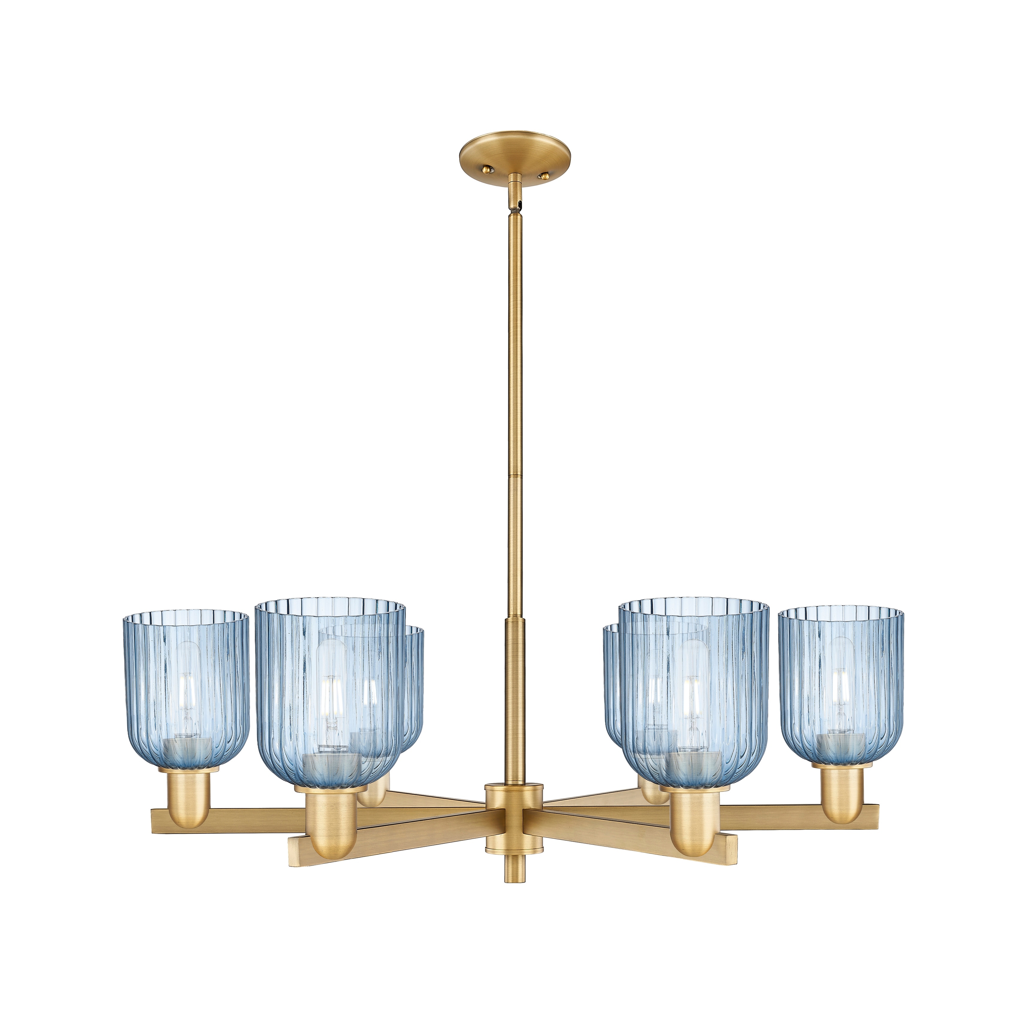 6-light Chandelier with Fabric Drum Shades Antique Gold, setting dining rooms, foyers, or living areas