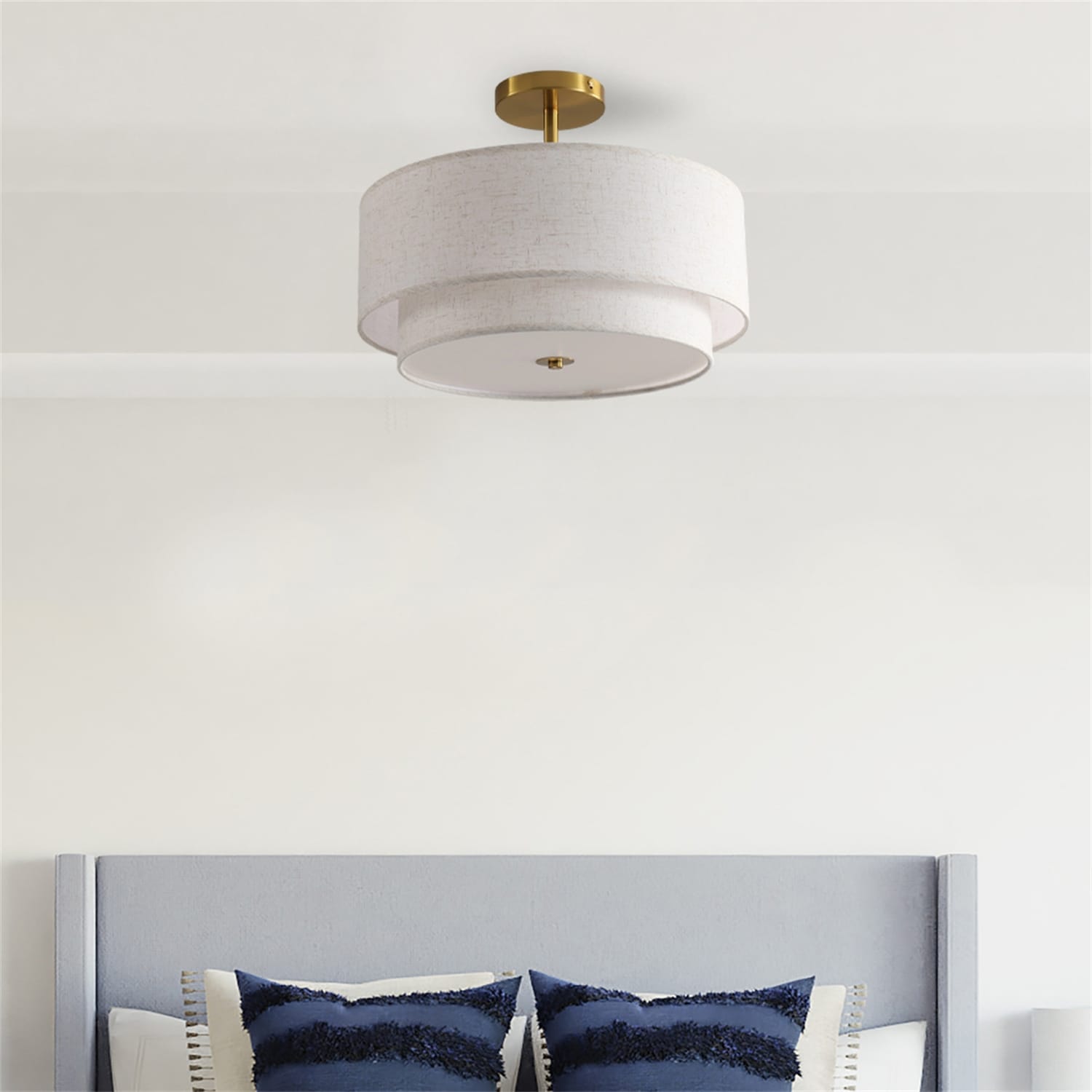 15" Modern Ceiling Light, Fabric Upholstered, Flush-Mount Fixture (Bulb Not Included)