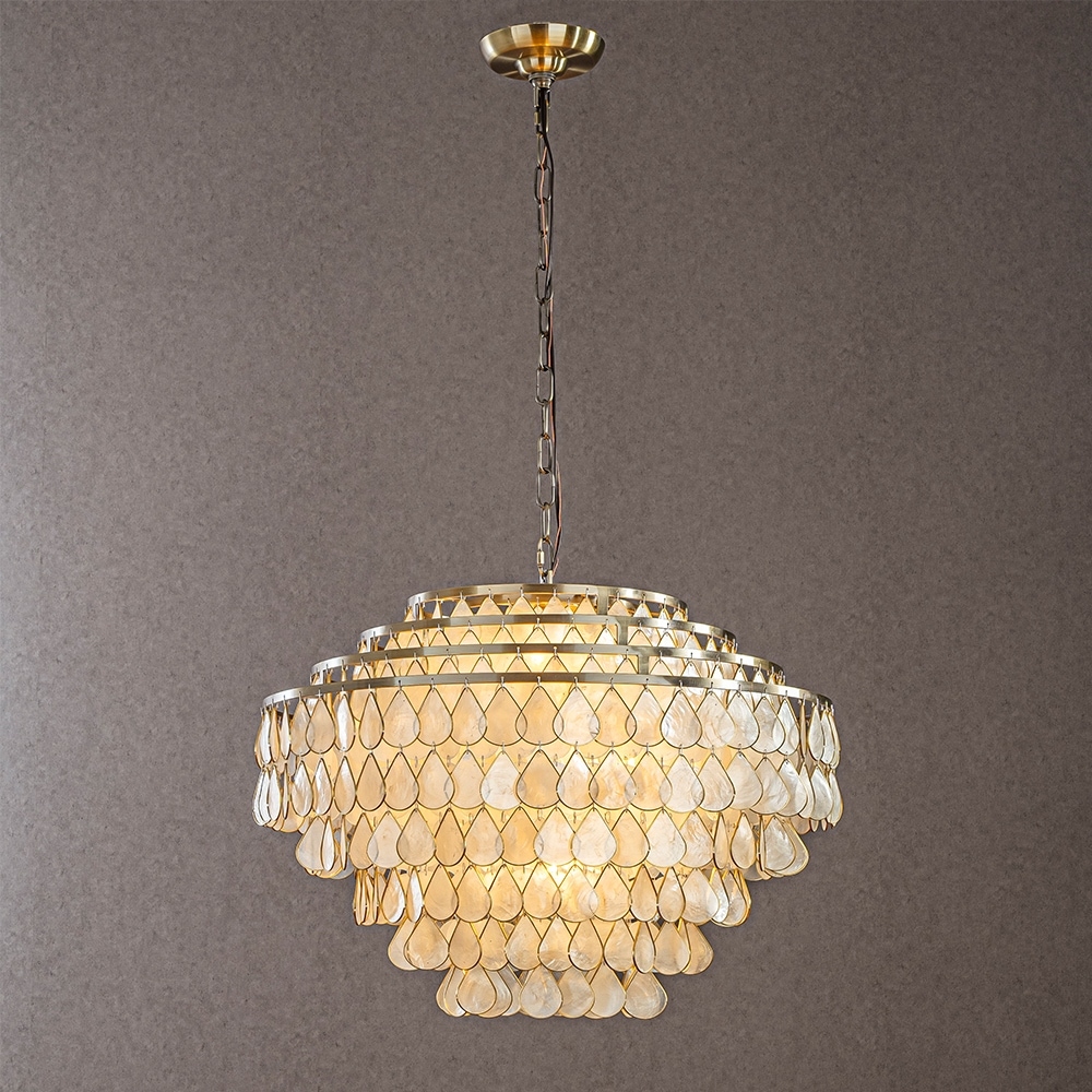 7-Light 24'' Mid-Century Modern Coastal Aged Bronze 4-Tier Natural Capiz Shell Chandelier Vintage For Dining Room Living Room