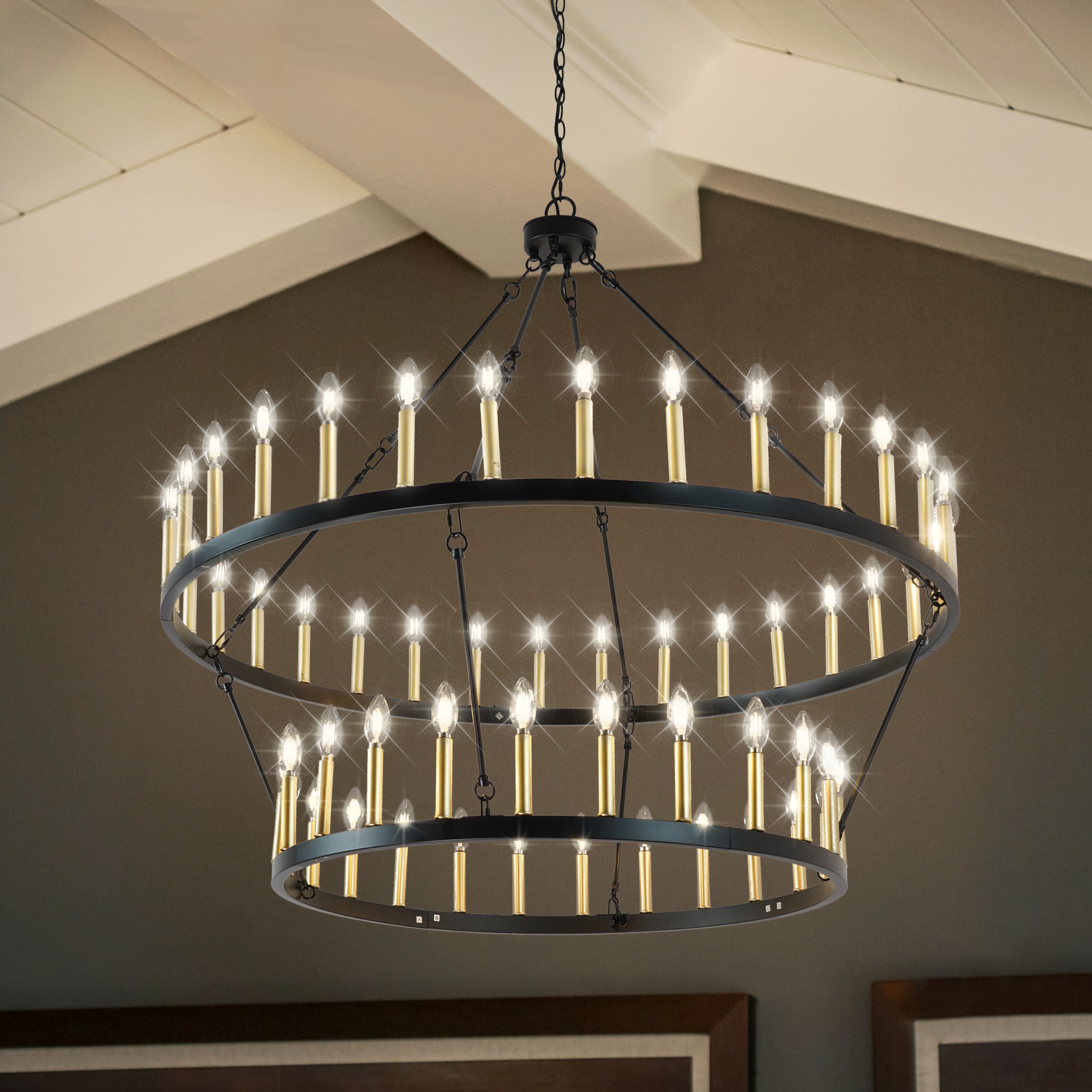 47-inch 2-Tier Wagon Wheel 56-light Chandelier - Black&Gold - 47"