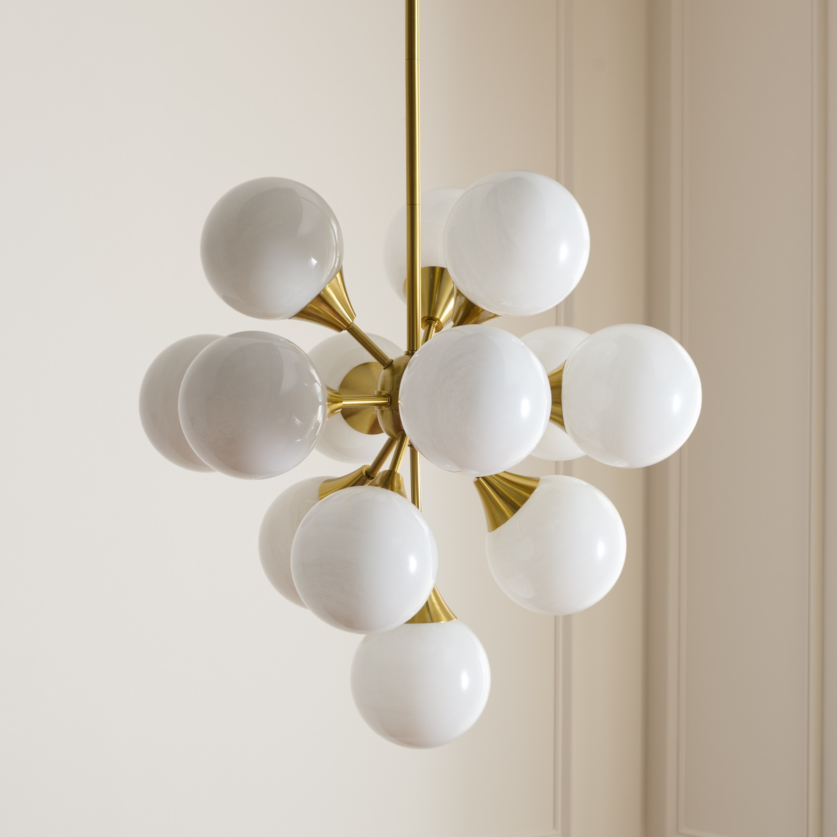 Safavieh Lighting Delvine 13-Lights 24-inch Chandelier - Brass/White - 24"W x 24"D x 56"H