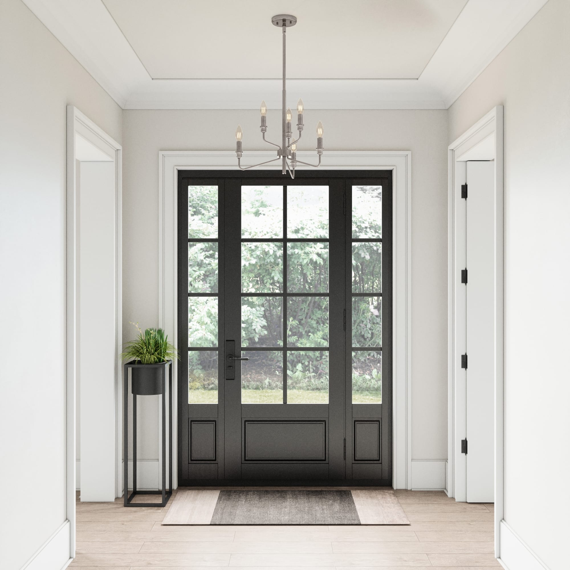 6-Light Candle Style Ceiling Chandelier - 18" - Satin Nickel