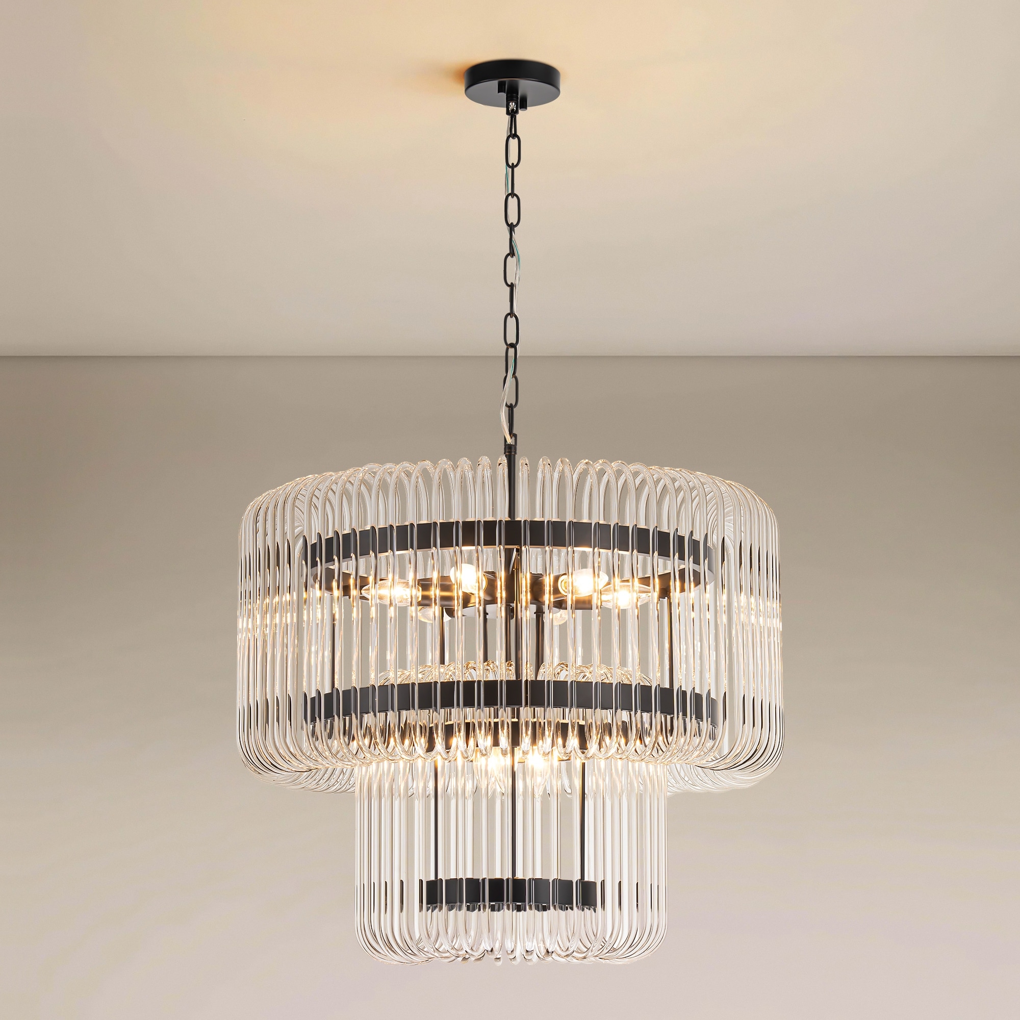 Modern Classic 8-Light Chandelier Matte Black Circular Light Fixture for Dining Room - 32.5 " × 20.5 "