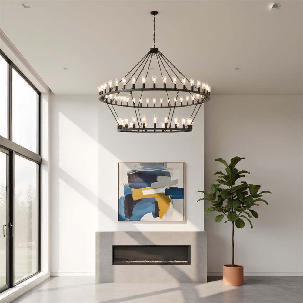 59.06 Inch Matte Black Wagon Wheel Chandelier 54-Lights(No Bulbs)