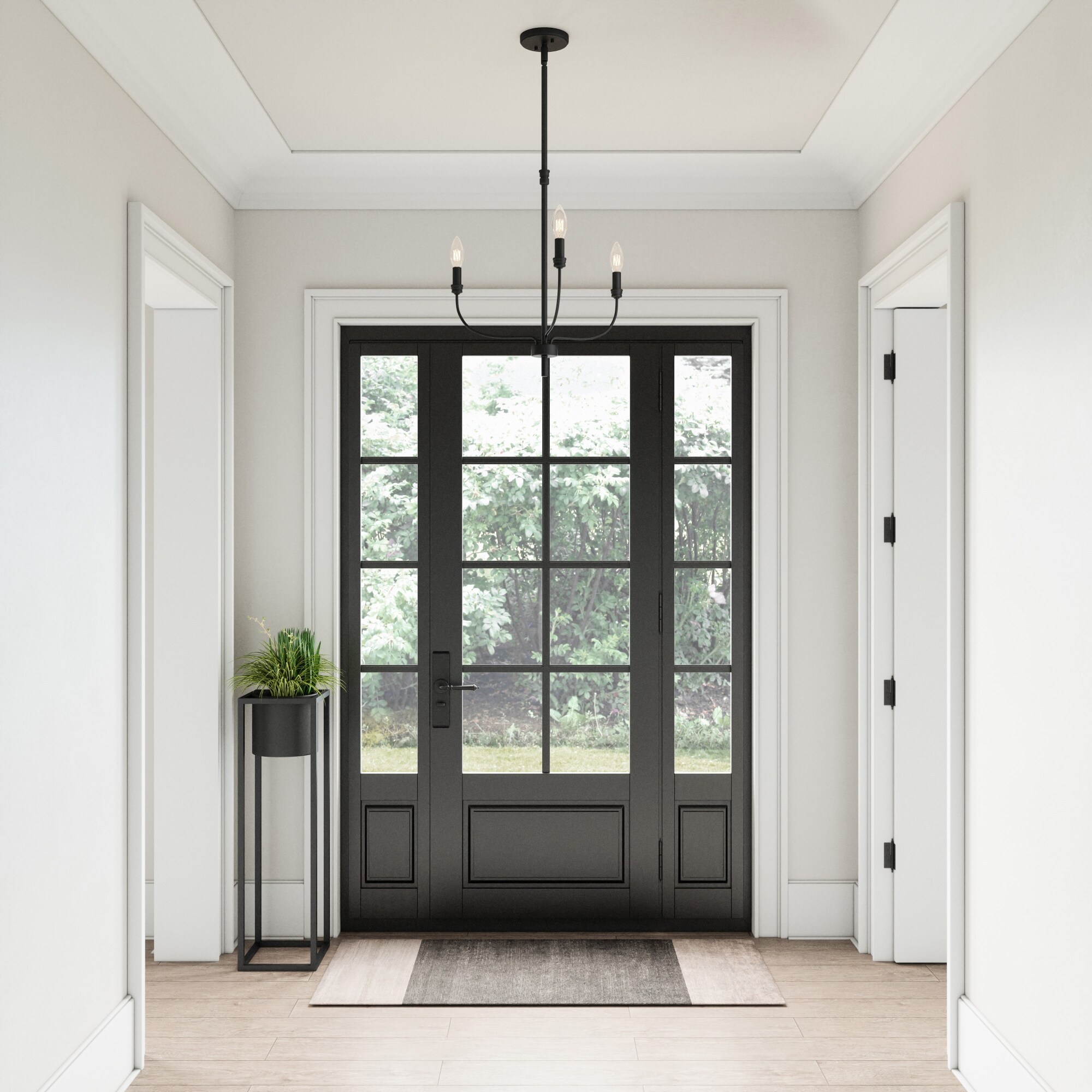 4 - Light Farmhouse, Lantern Pendent Light, Wood Chandelier with Adjustable Chain for Kitchen, Entryway, Bulb Not Included