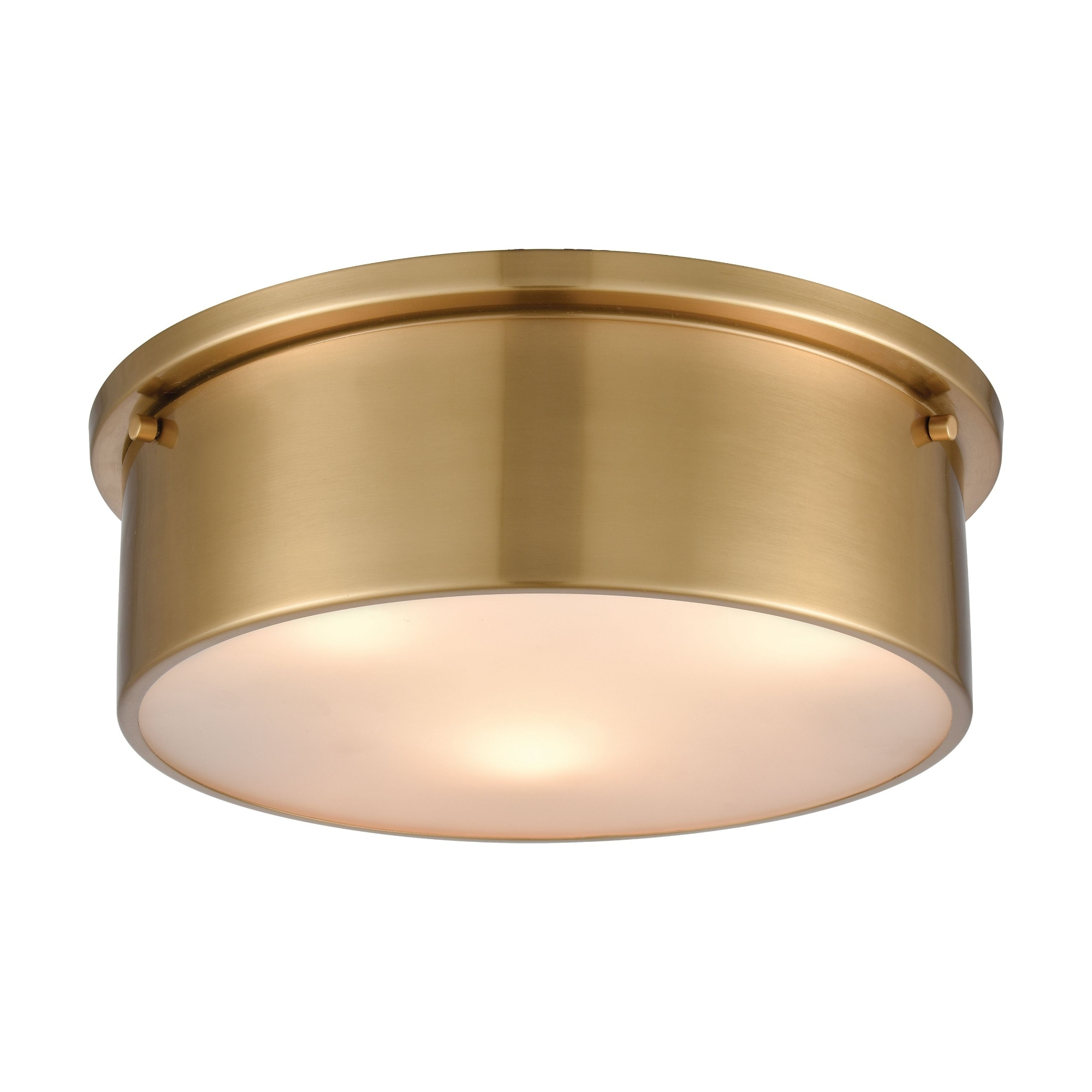 3-Light Flush Mount Ceiling Light Fixture - 14" - Satin Brass Finish