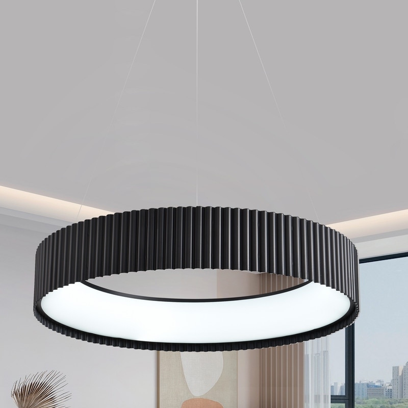 23.62in Modern LED Chandelier Black Round Ceiling Pendant Light 1 Ring with Remote Control Dimmable for Dining Room