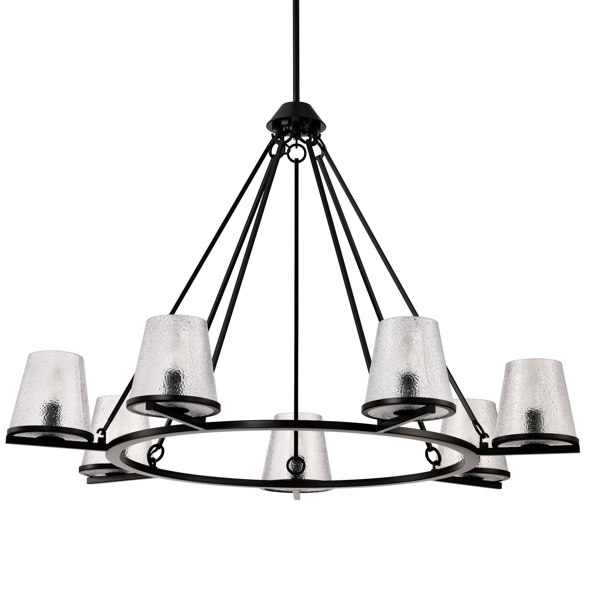CraftHome 5-Light 39'' Matte Black Rectangle Elegant Vintage Textured Glass Chandelier Art Glass For Ktichen Island - W39''