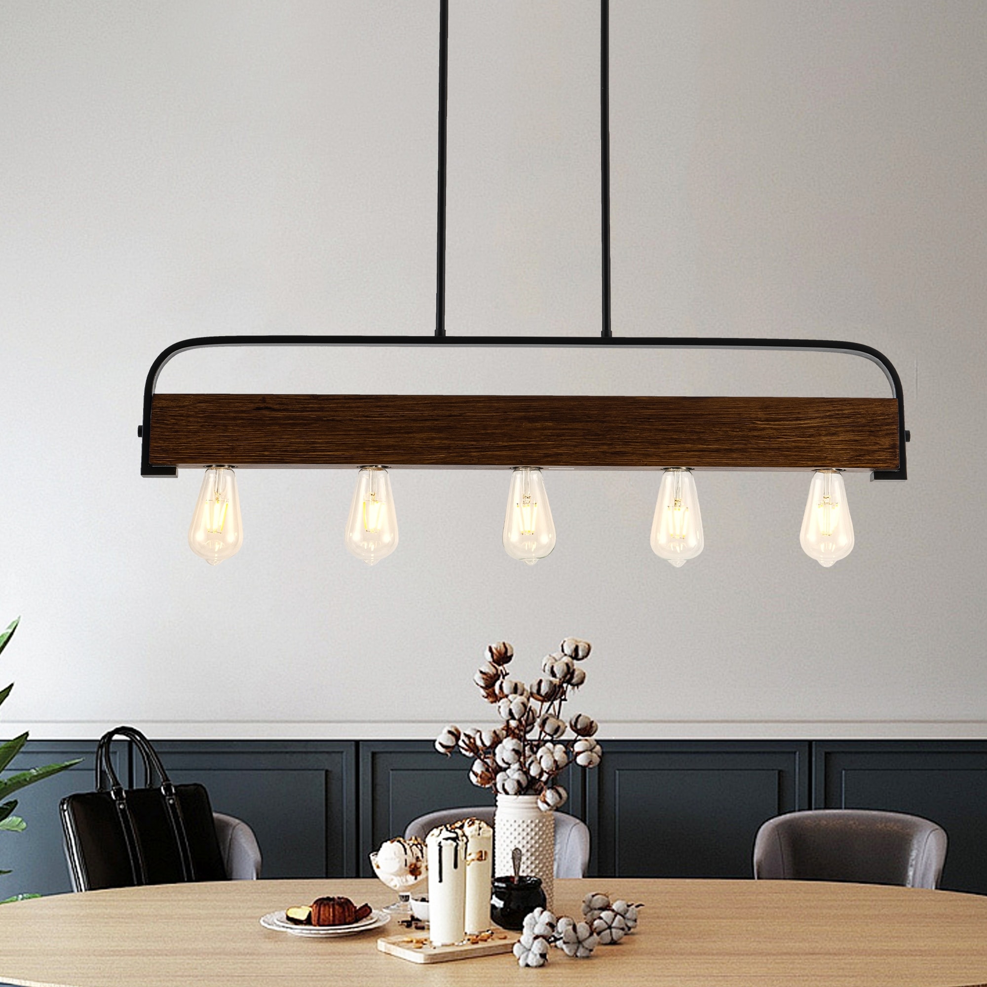 6-Light Wood Chandelier, Hanging Light Fixture with Adjustable Chain for Kitchen, Pendant Ceiling Lighting Fixture