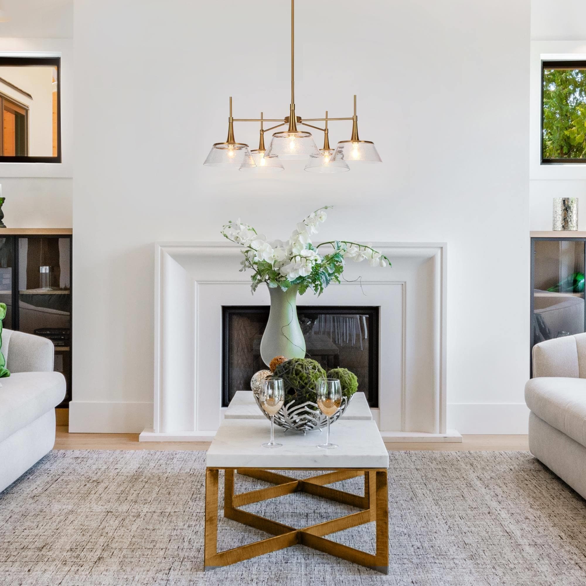 6-Light Mid-Century Modern Chandelier Brass Industrial Lighting Fixture for Dining Room & Kitchen Island - W47''
