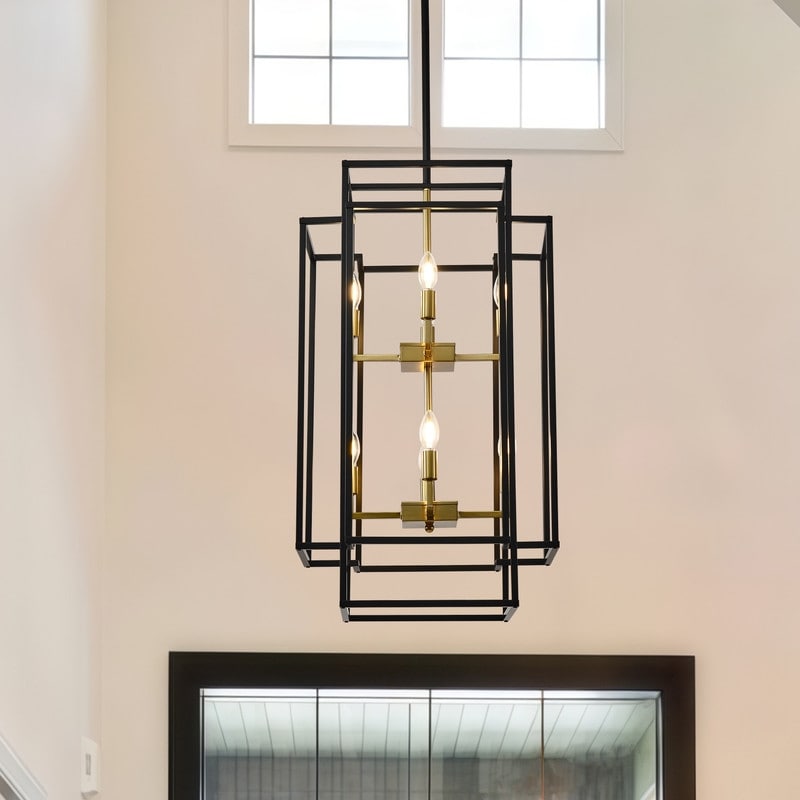Black and Gold Chandelier Modern Lantern Chandeliers for High Ceilings Entryway Farmhouse Lighting Fixtures