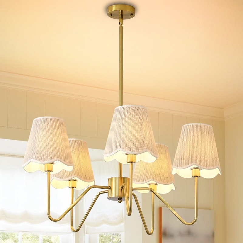 Boho Chandelier with Fabric Shade Farmhouse Brass Pendant Light for Dining Room Adjustable Hanging Light Fixtures