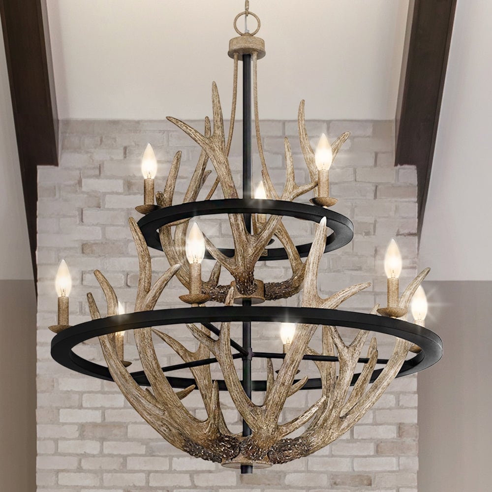 Luxury Old World Chandelier, 39.00H x 32.00W, with Western Style, Earth Black, UQL4820 by Urban Ambiance
