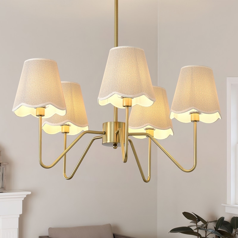 Boho Chandelier Gold Farmhouse Rustic Light Fixture with Fabric Lampshade