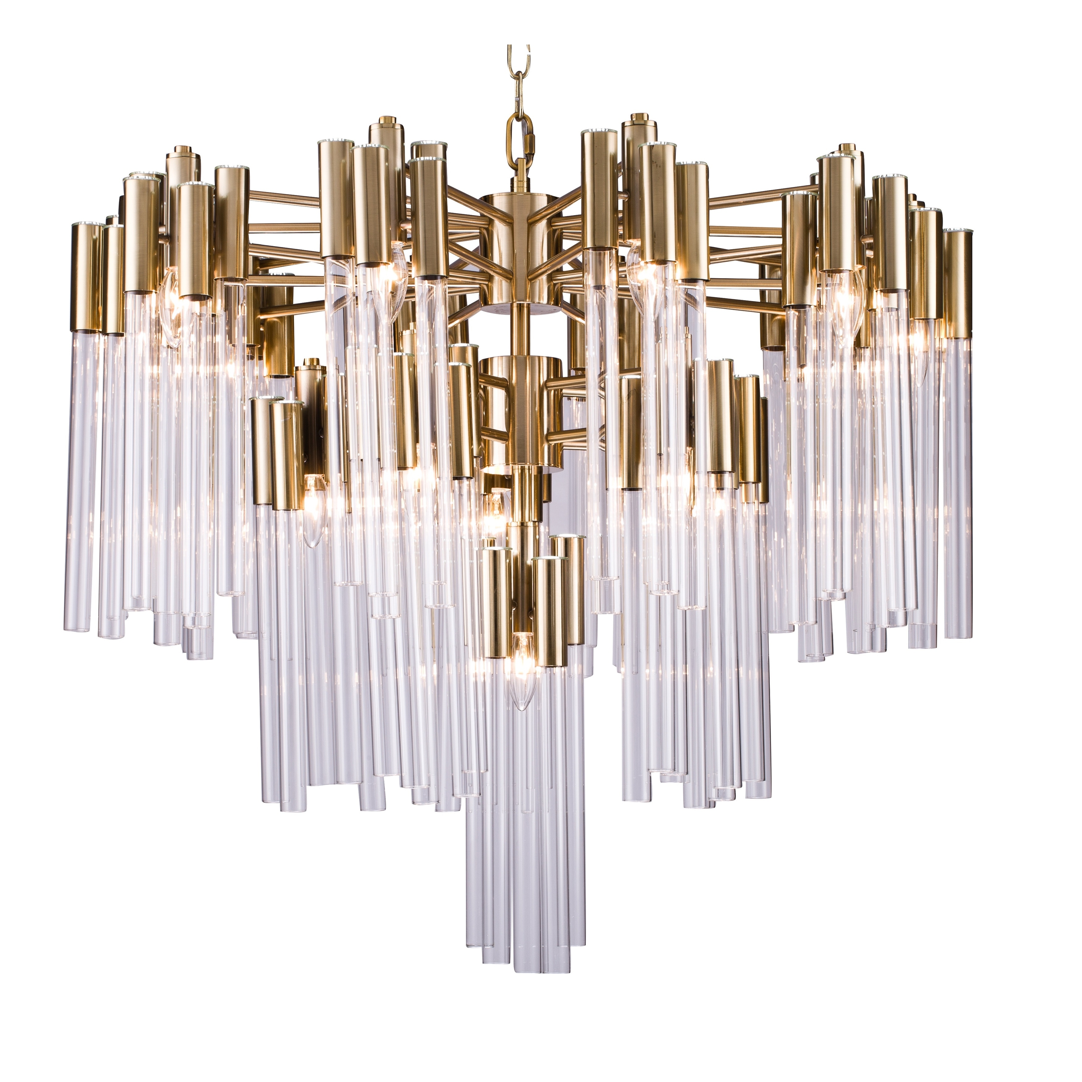 16-Light 3 Tier Gold Frame Chandelier With Glass Accents