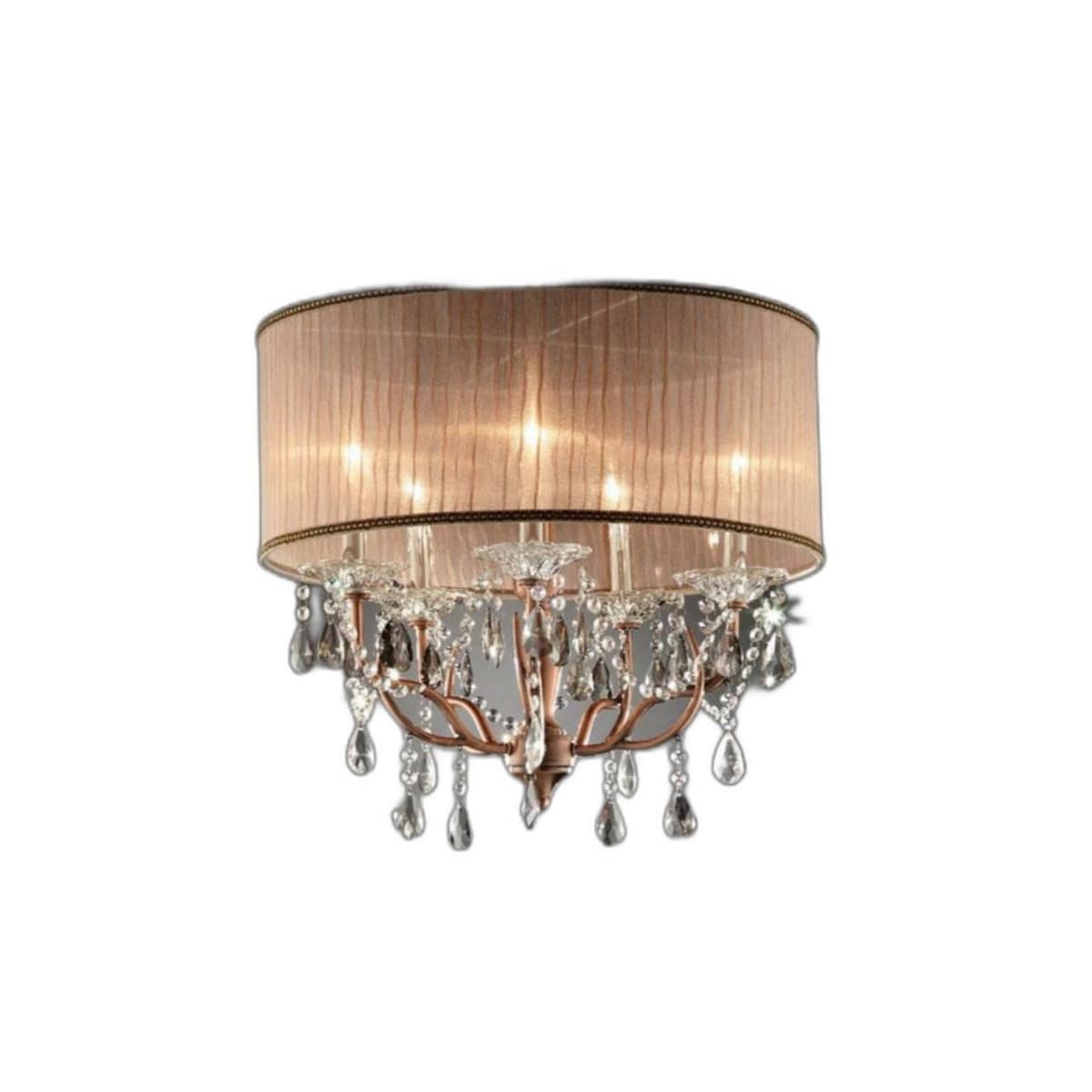 Silver and Pink Faux Crystal Cylinder Chandelier Modern Hanging Lamp with Fabric Shade for Bedroom or Living Room - 22.5" x 67"