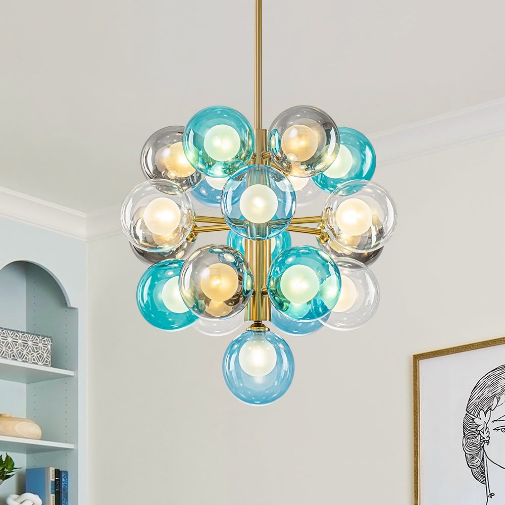 Art Decor 19-Light Colorful Dual-Tier Glass Grape Chandelier - 19.7 in