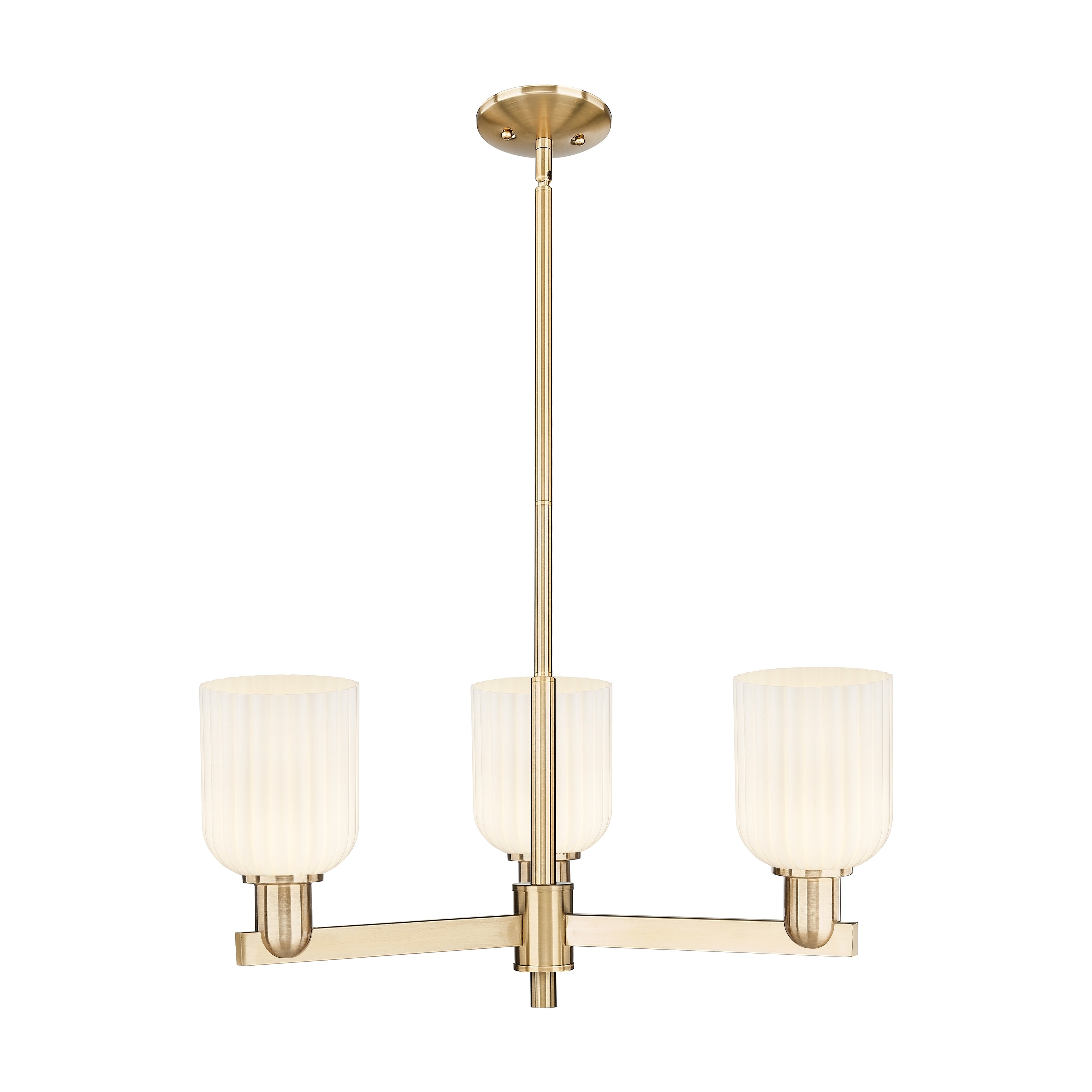 3 - Light Modern Linear Glass Globe Chandelier - Brushed Gold