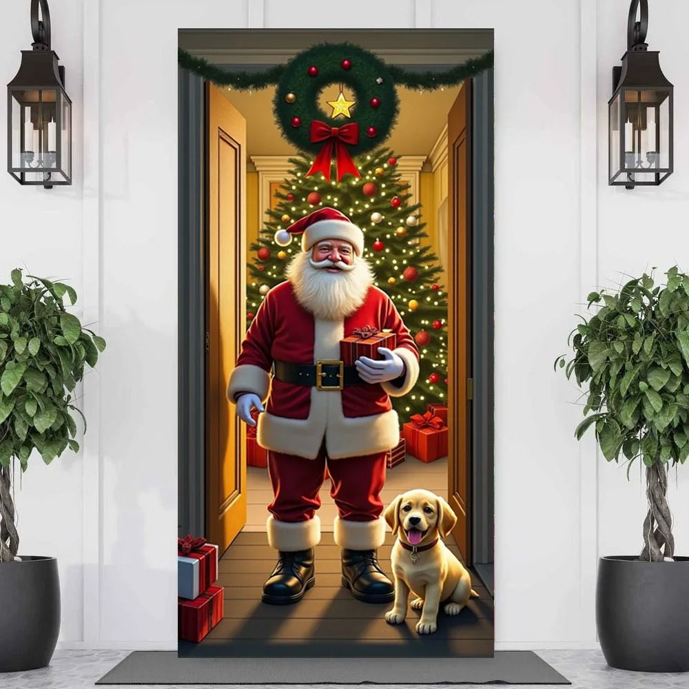 Santa Claus Christmas Door Cover Festive Holiday Hanging Decoration b