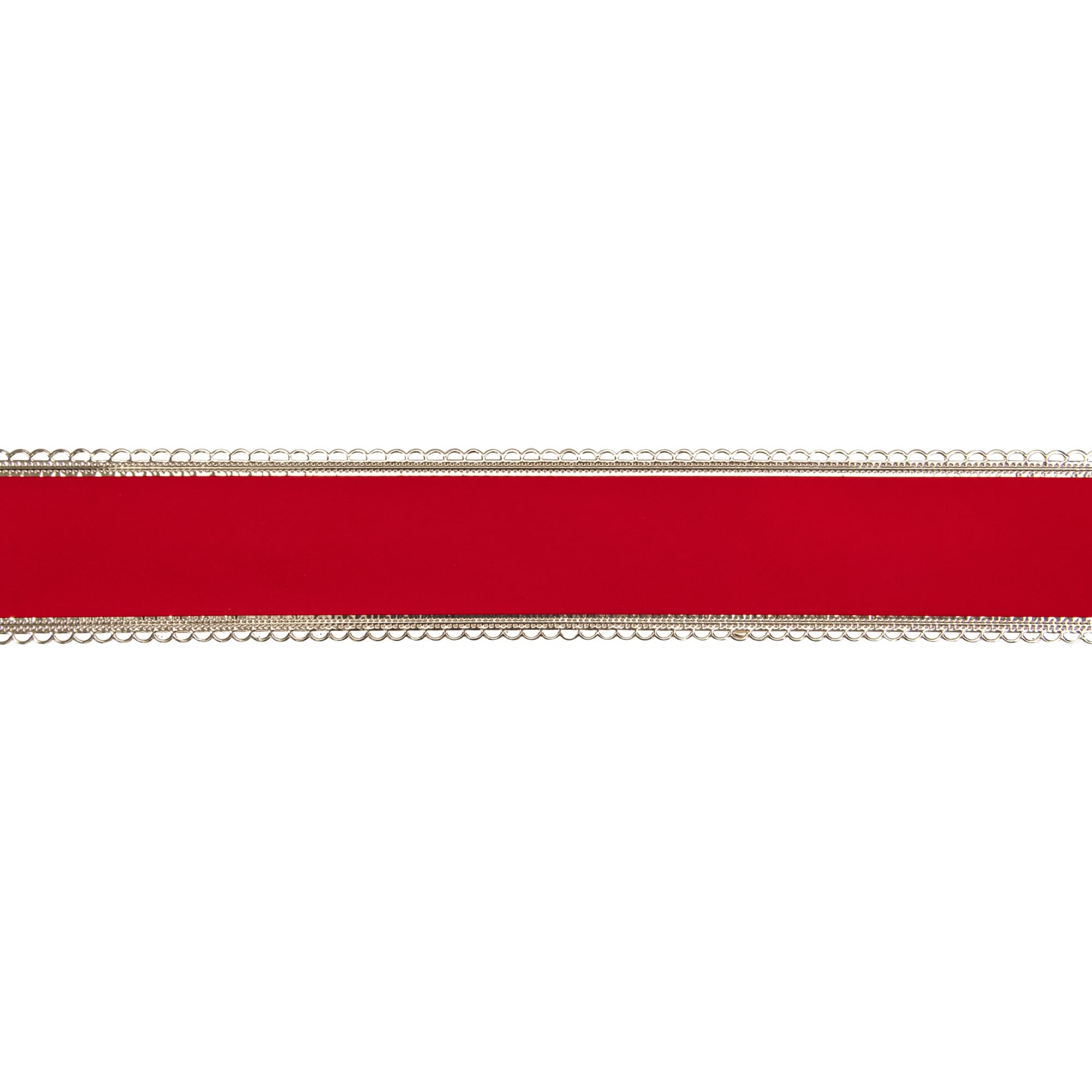 Red and Gold Velvet Christmas Wired Craft Ribbon 2.5" x 10 Yards - 2.5" x 10 Yards