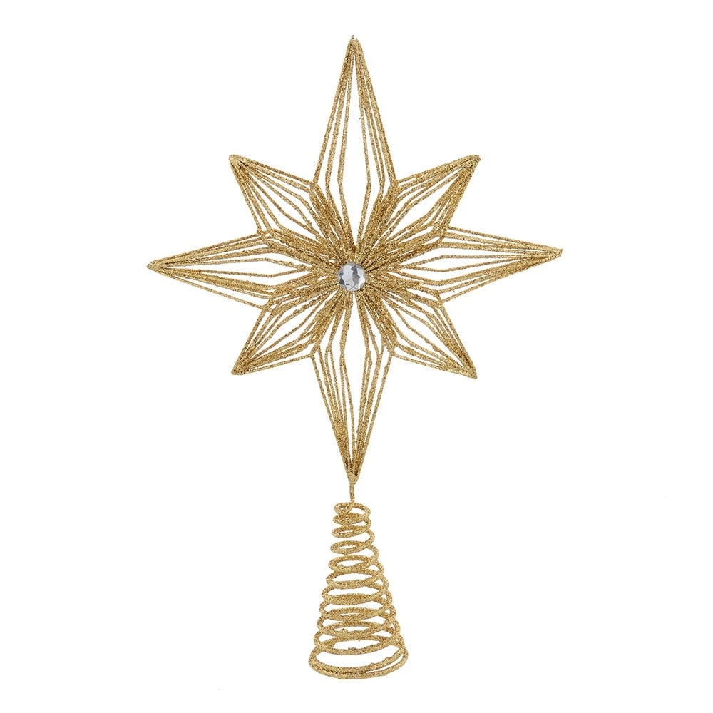 Kurt Adler 12-Inch Unlit Gold Glittered 6-Point Star Tree Topper