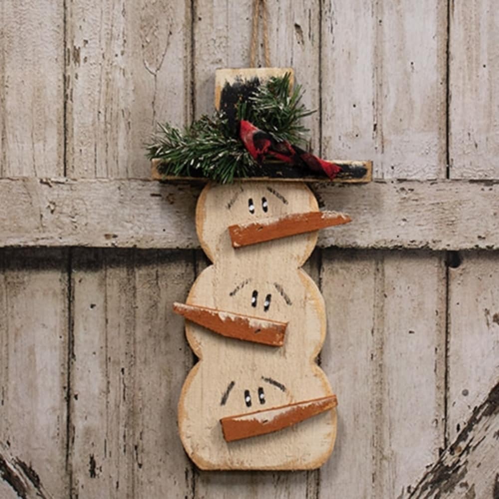Rustic Wood Hanging Snowman Trio - 14" Decorative Wall Accent - 7.50” L x 1.50” W x 14” H