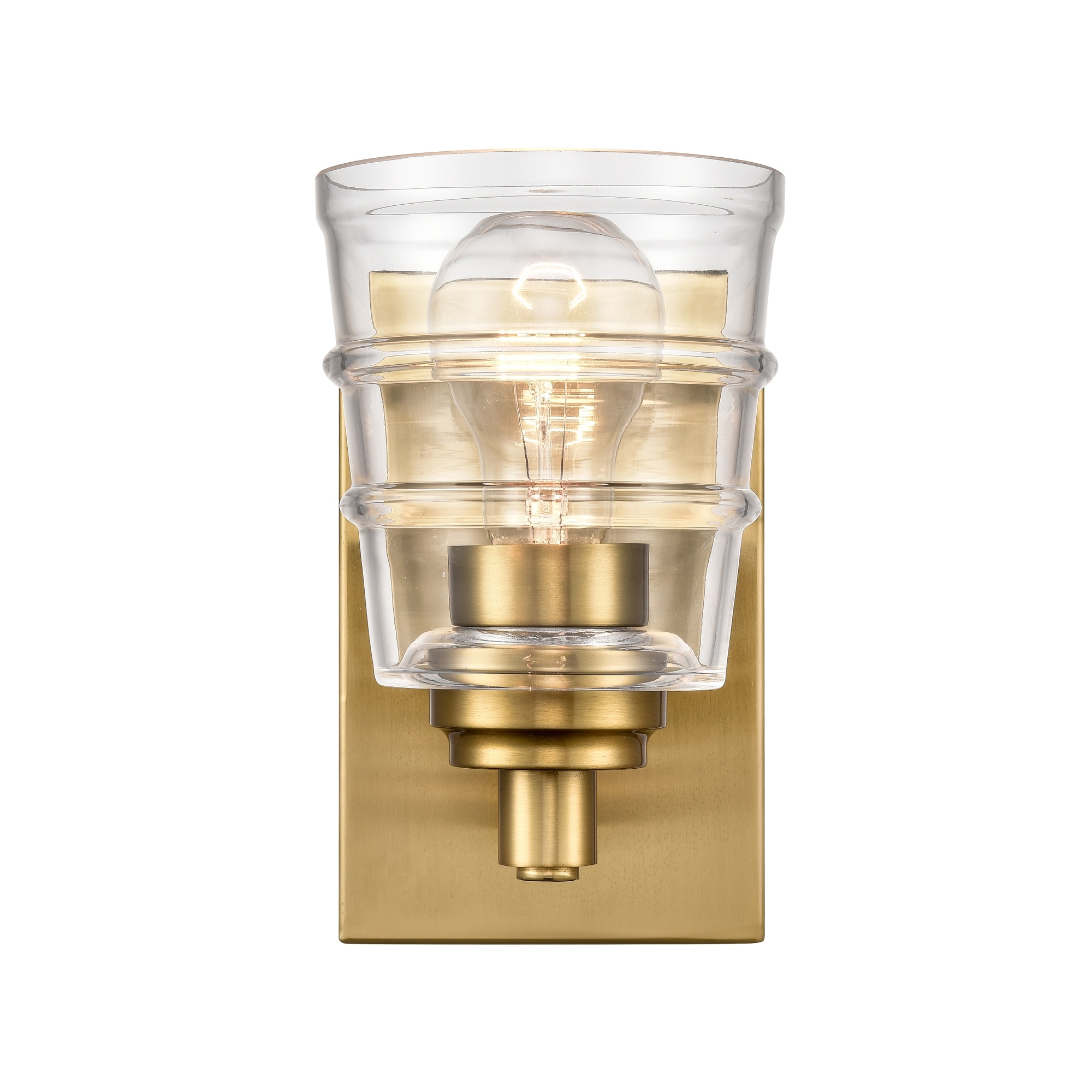 1-Light Ribbed Glass Shade Vanity Light Fixture - 7.75" - Satin Brass Finish