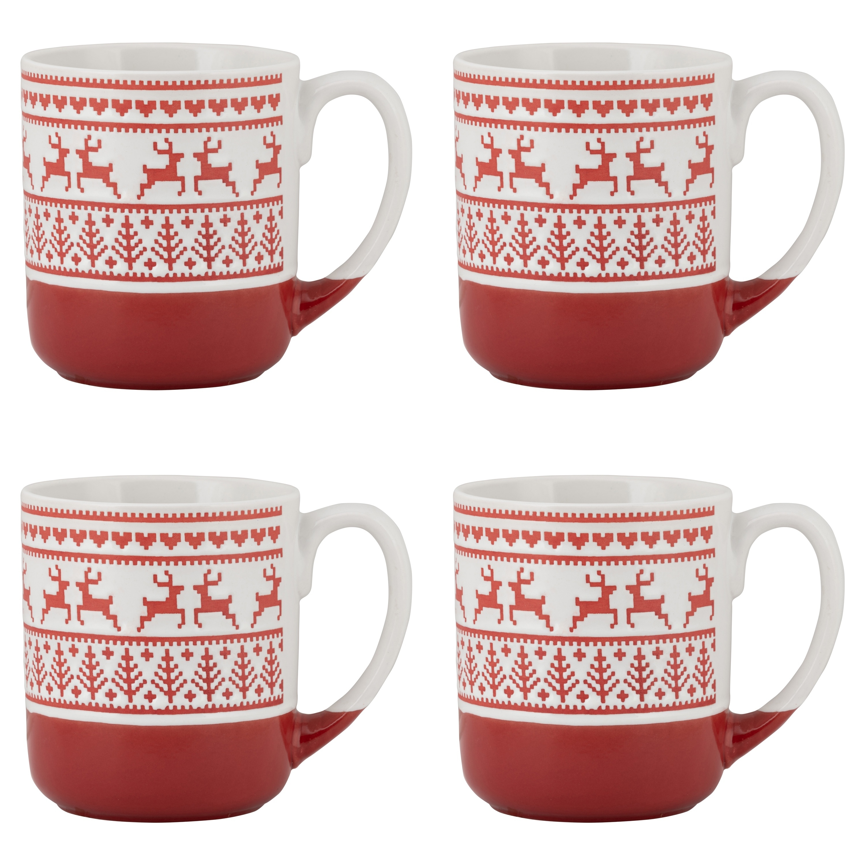 10 Strawberry Street Reindeer Sweater Wax Resist Mugs, Set of 4
