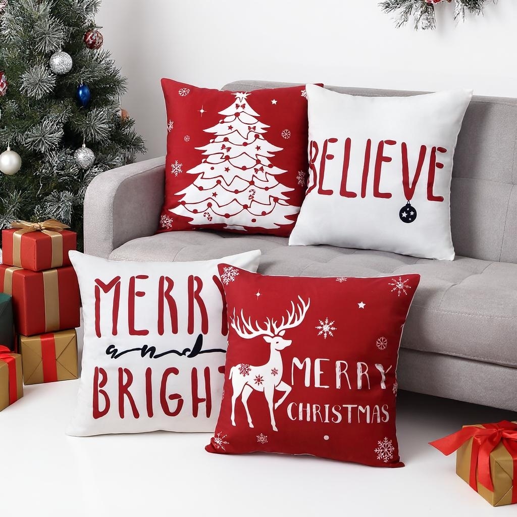 Christmas Velvet Throw Pillow Covers, Snowflake Tree Deer Pattern Set of 4