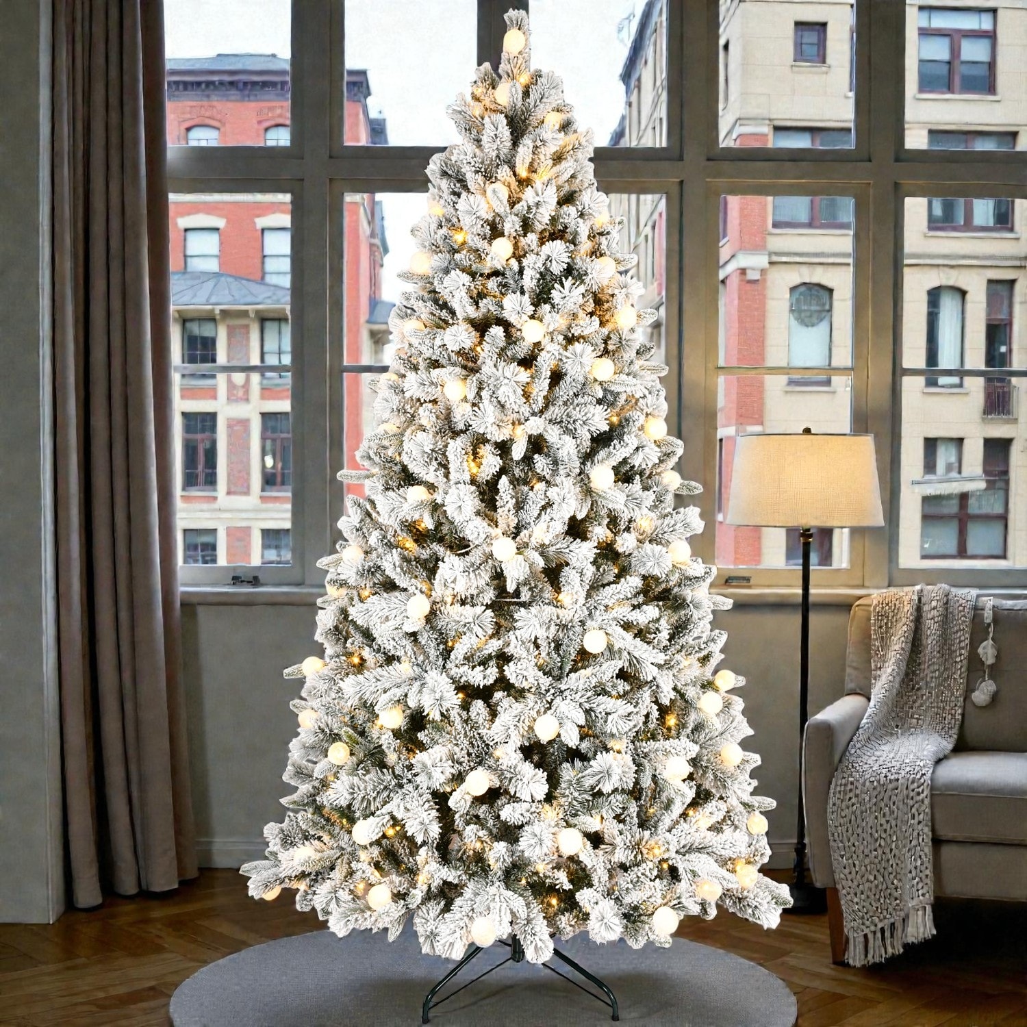 Flocked Snowy Christmas Tree with Hinged Design, 5/6/7ft