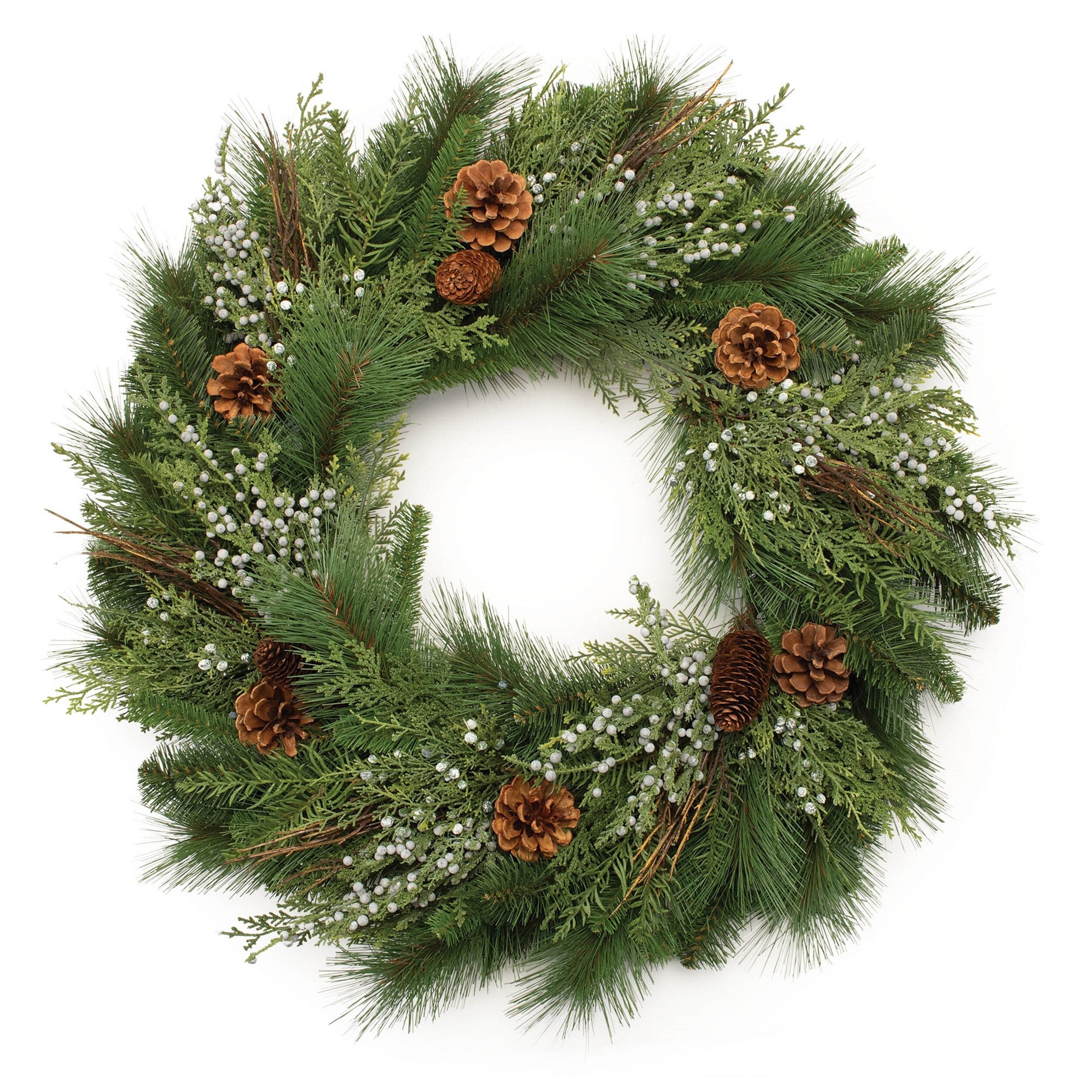 Long Needle Pine & Cedar Double Wreath w/Berries - 24"