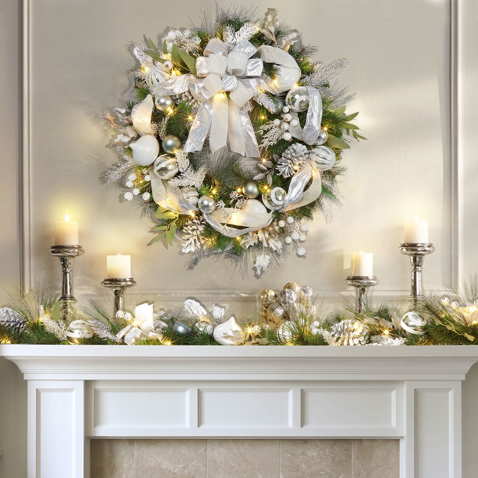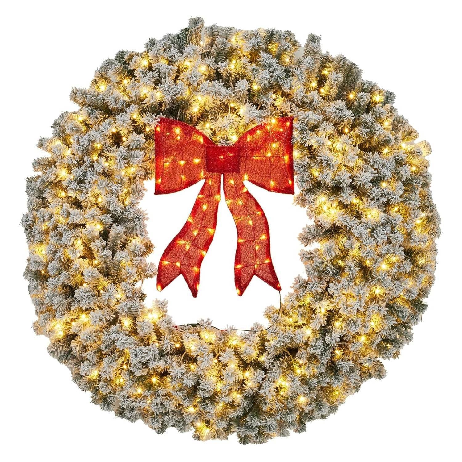 30" Christmas Wreath with Lights, Prelit Large Outdoor Xmas Wreath for Front Door Holiday Decor