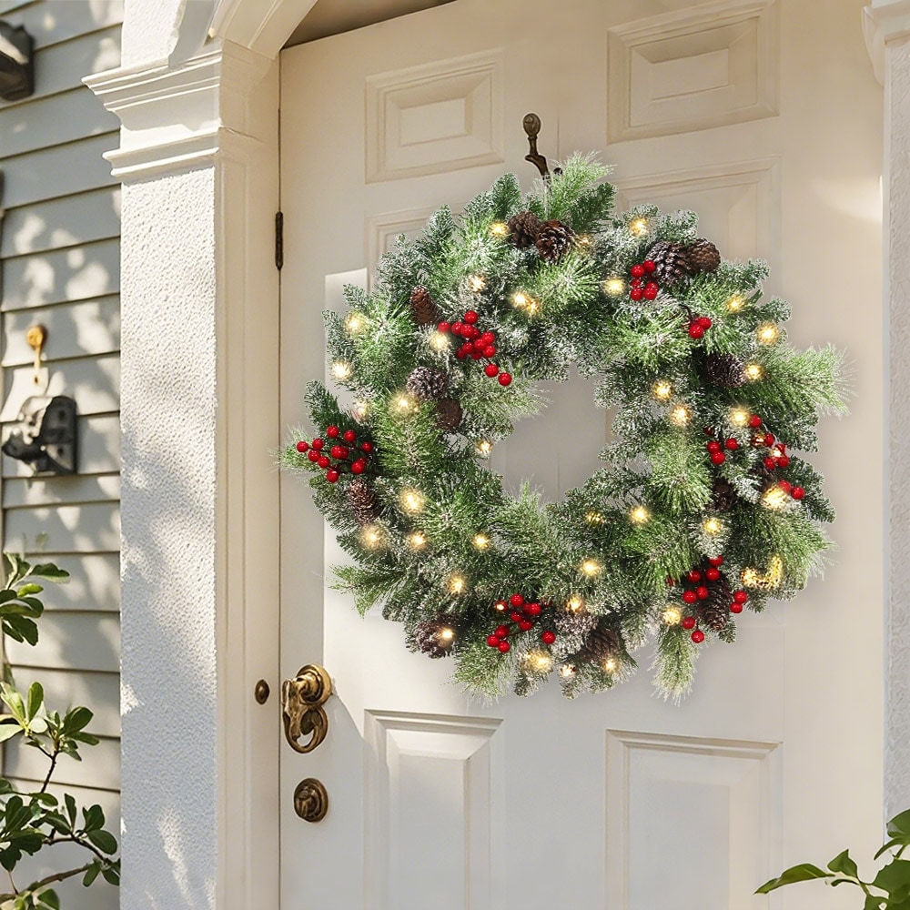 Maypex 24'' Lighted Faux Christmas Wreath - Green - 24.00" L x 24.00" W x 5.00" H