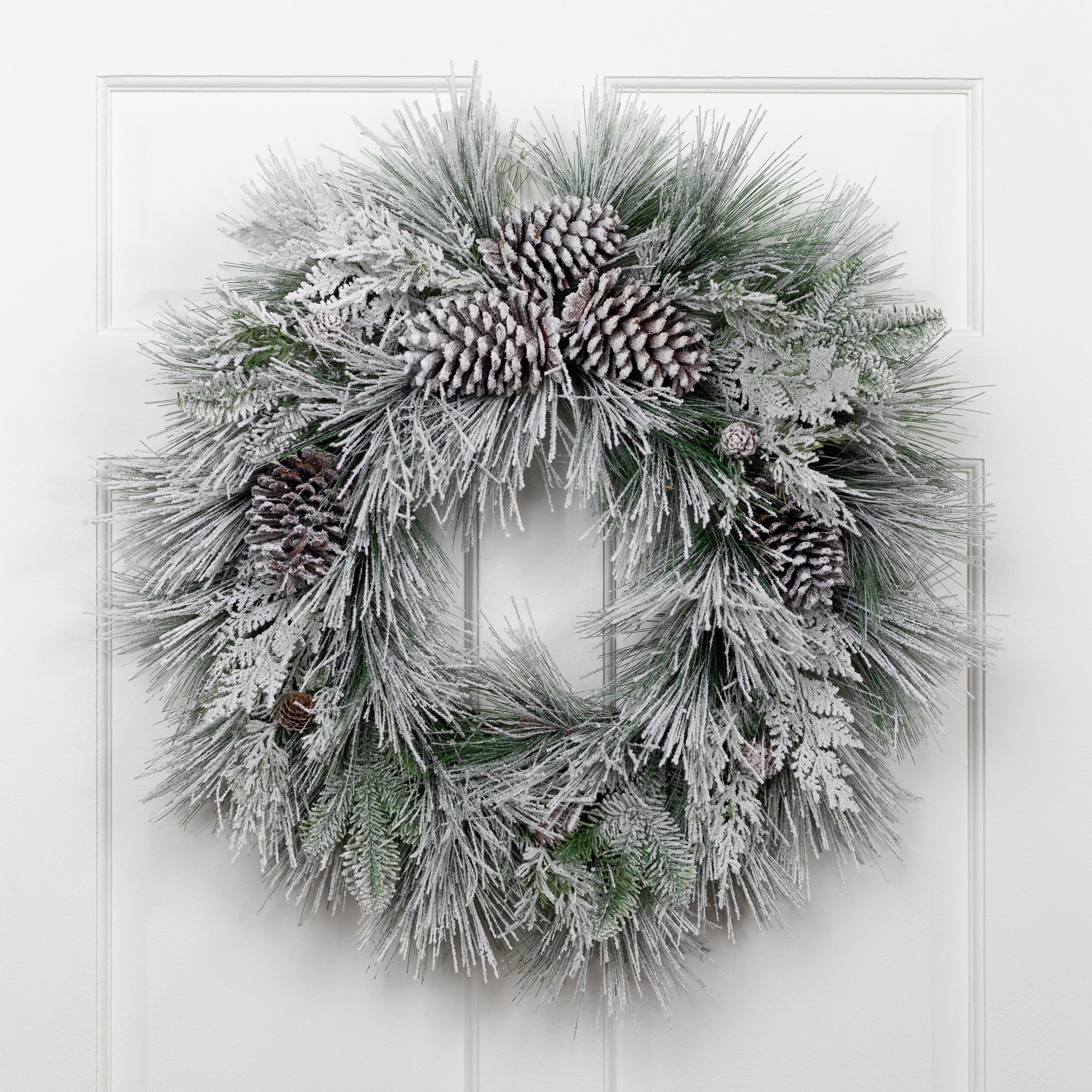 24" Prelit Christmas Wreath with Lights, Snow Frost - 2 Foot