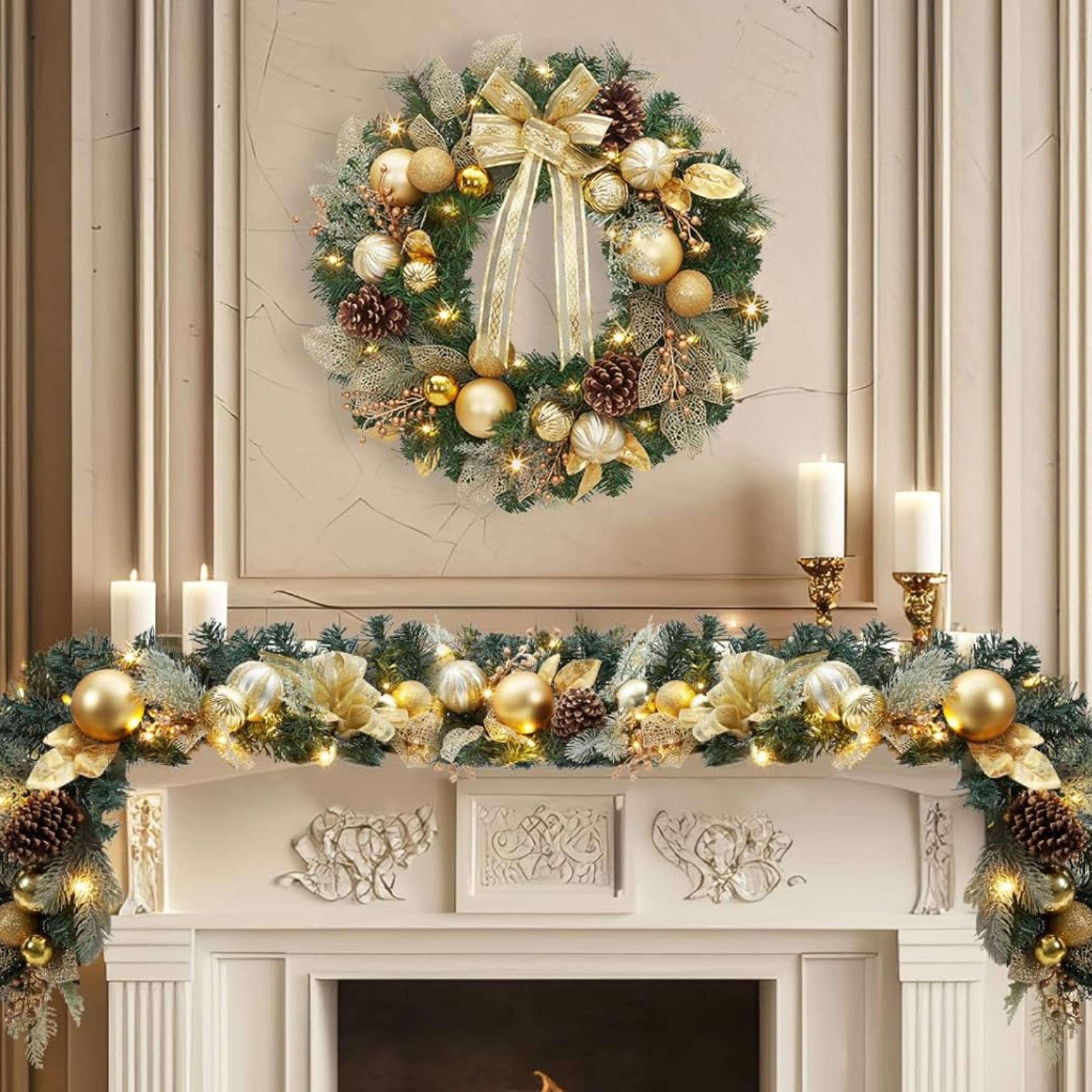 Gymax 33'' Lighted Ornament Pre-Lit Christmas Wreath w/ 128 Cold White