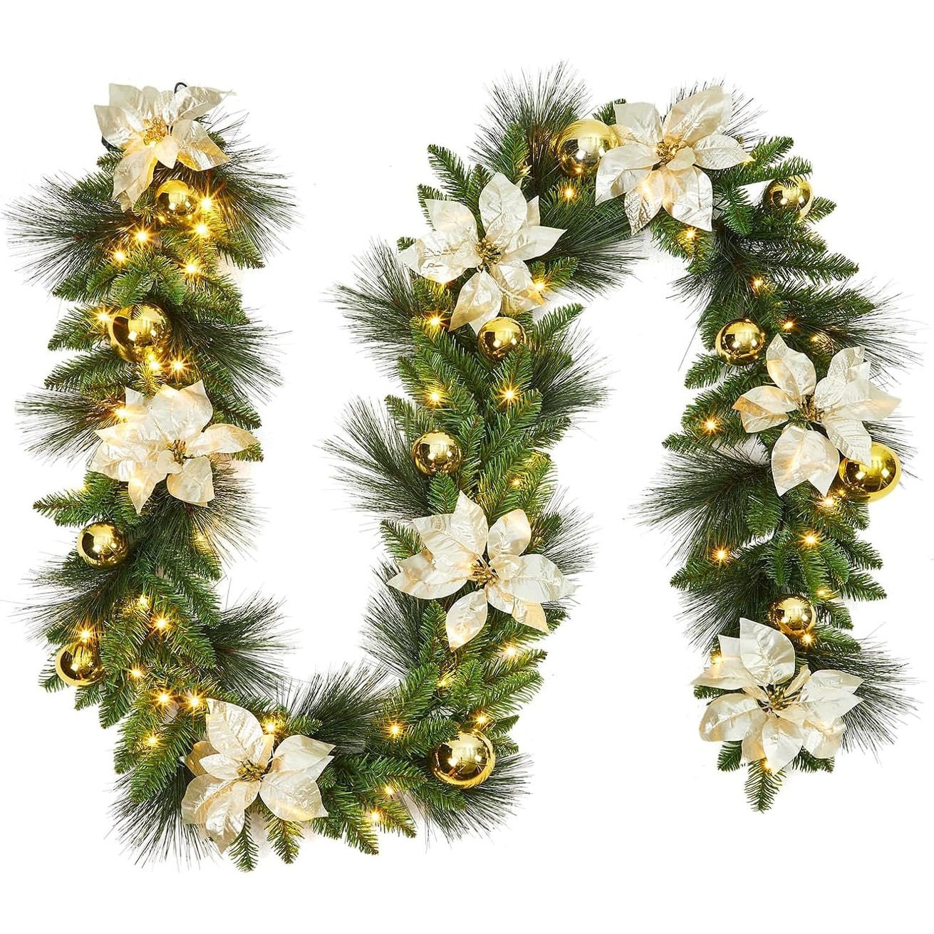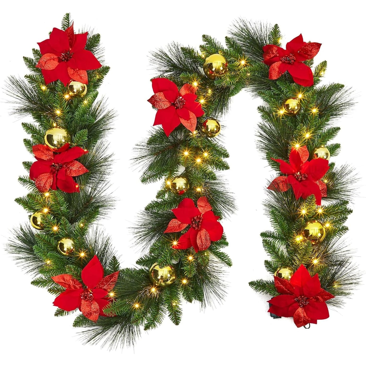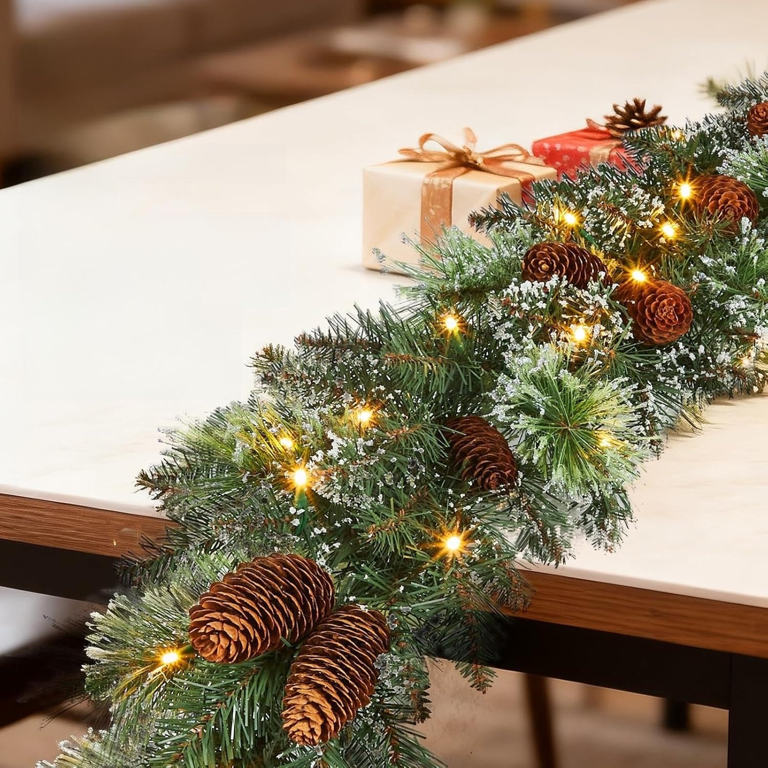24" Pre-Lit Christmas Wreath with 50 Warm LED Lights, Frosted Pine Cones & Berries for Door or Wall Decor