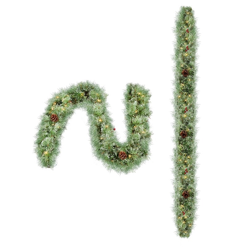 2 Pack 9FT Lighted Artificial Xmas Garland with 200 Warm Lights and 440 Tips and Red Berries