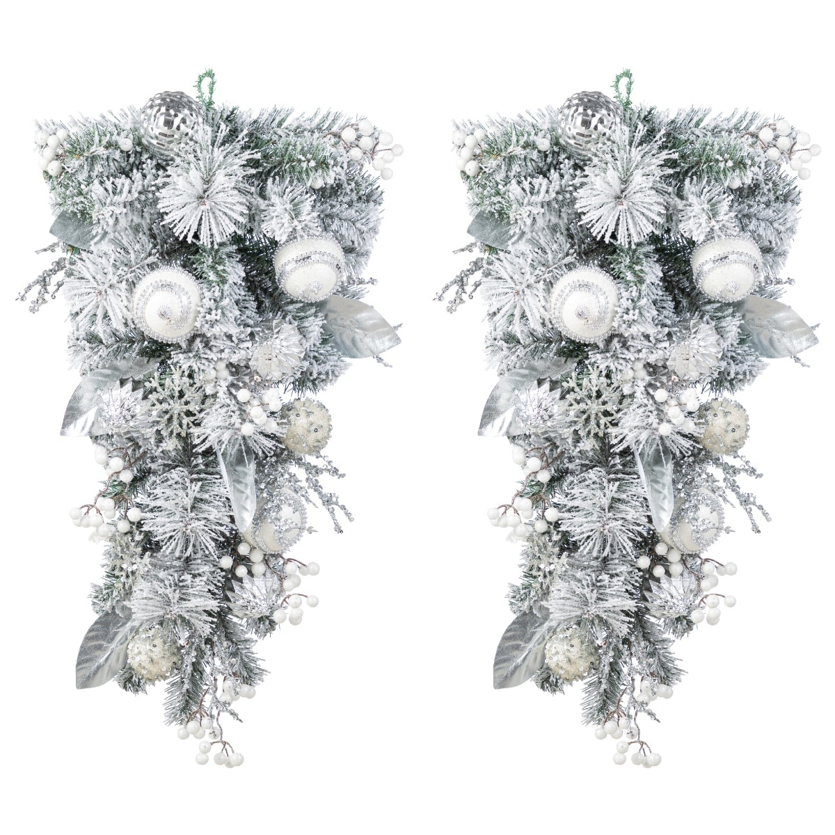 Glitzhome Christmas Berry Bow Pinecone Bell Holy Leaf Teardrop Swag Xmas Wreath