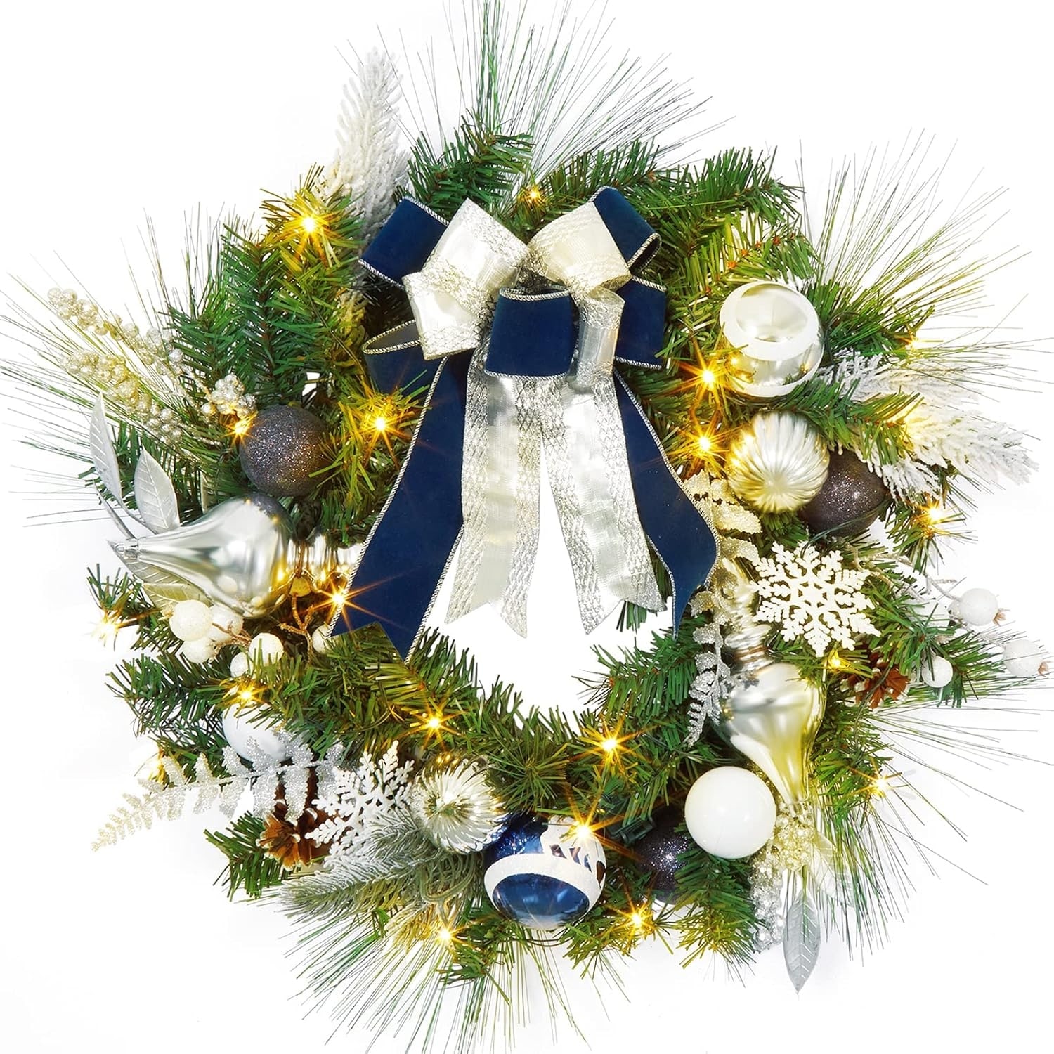 GIMMYFIVE 24 Inch Christmas Wreath, Blue Silver Christmas Wreaths for Front Door