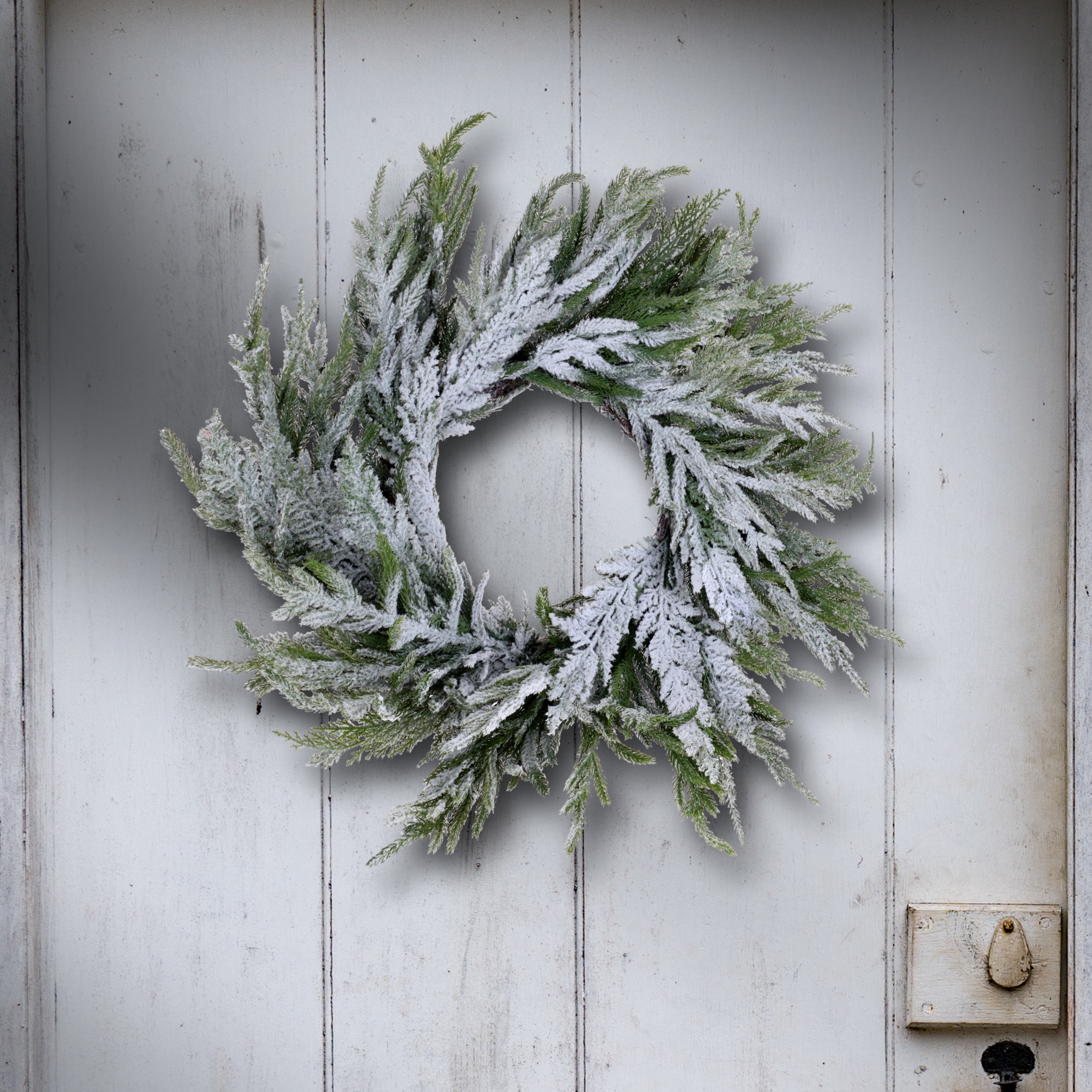 16" Real Touch Norfolk Pine Wreath With Snow - Green
