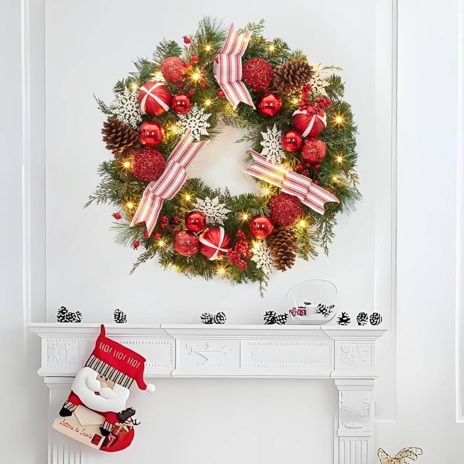 Lighted 24 in Christmas Wreath for Front Door Window Fireplace - N/A