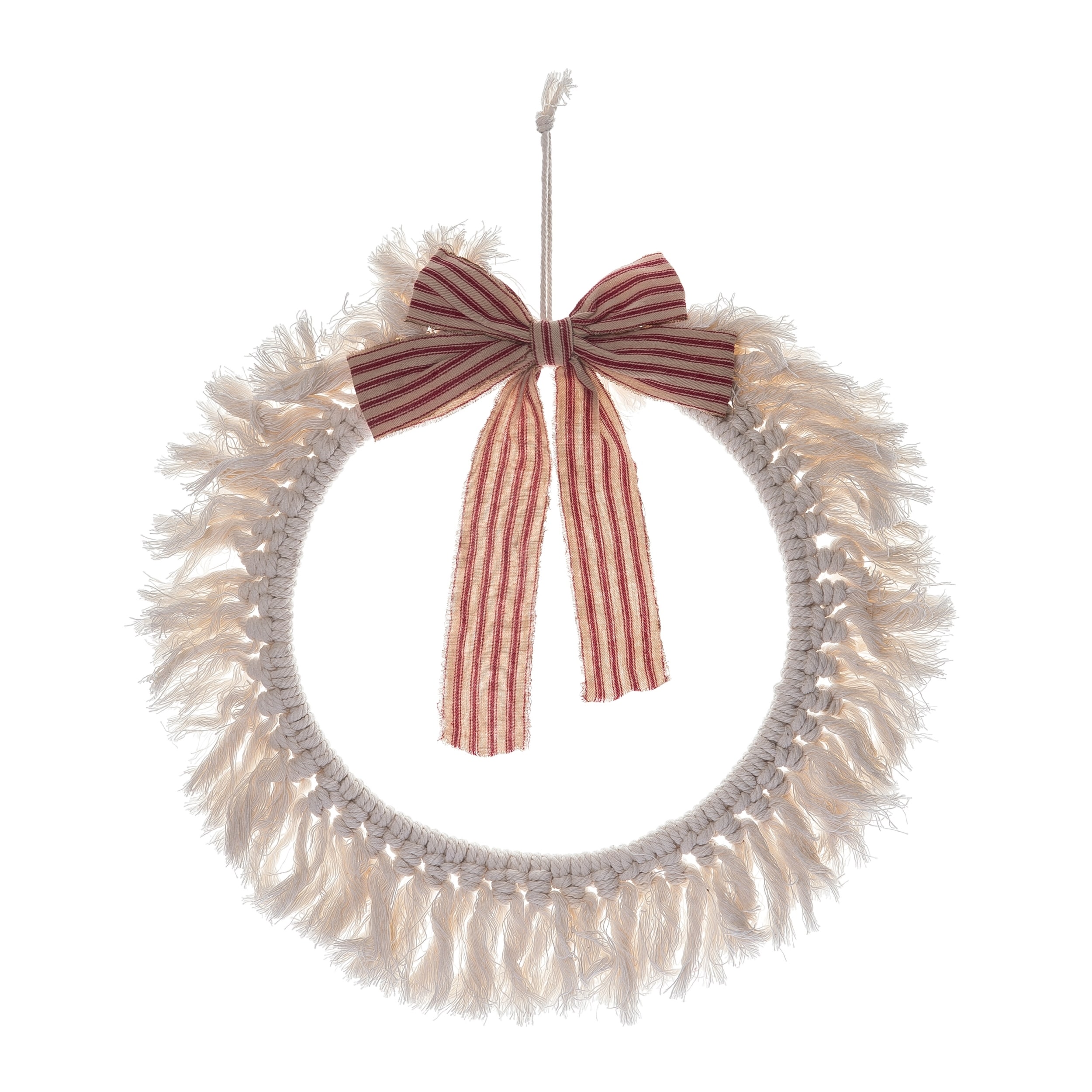 Transpac Polyester 15.7 in. Sand Christmas Macrame Modern Wreath