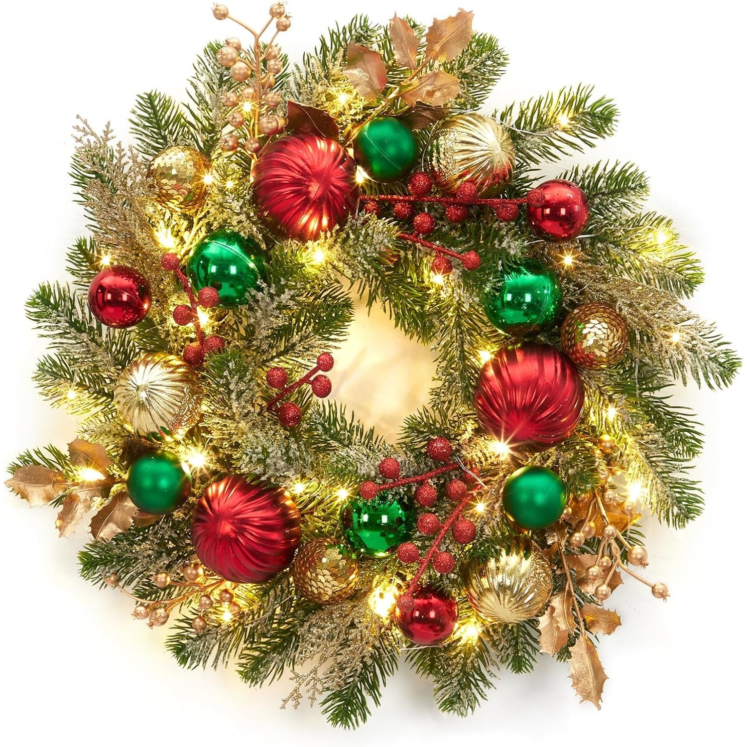 24 In Lighted Christmas Wreath, Xmas Wreaths for Front Door, Battery Operated