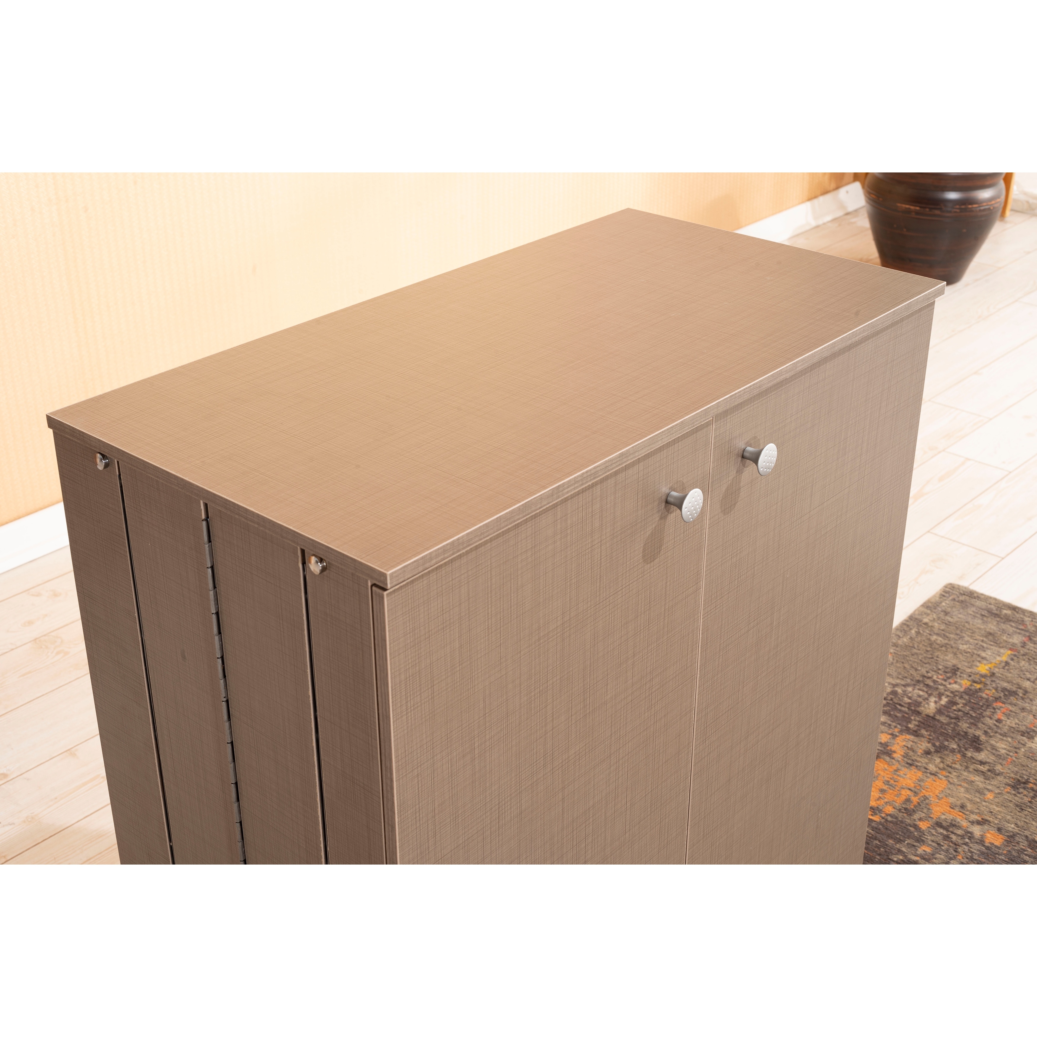 Anmytek Walnut Mid-Century Modern Shoe Cabinet with 2 Flip Drawers