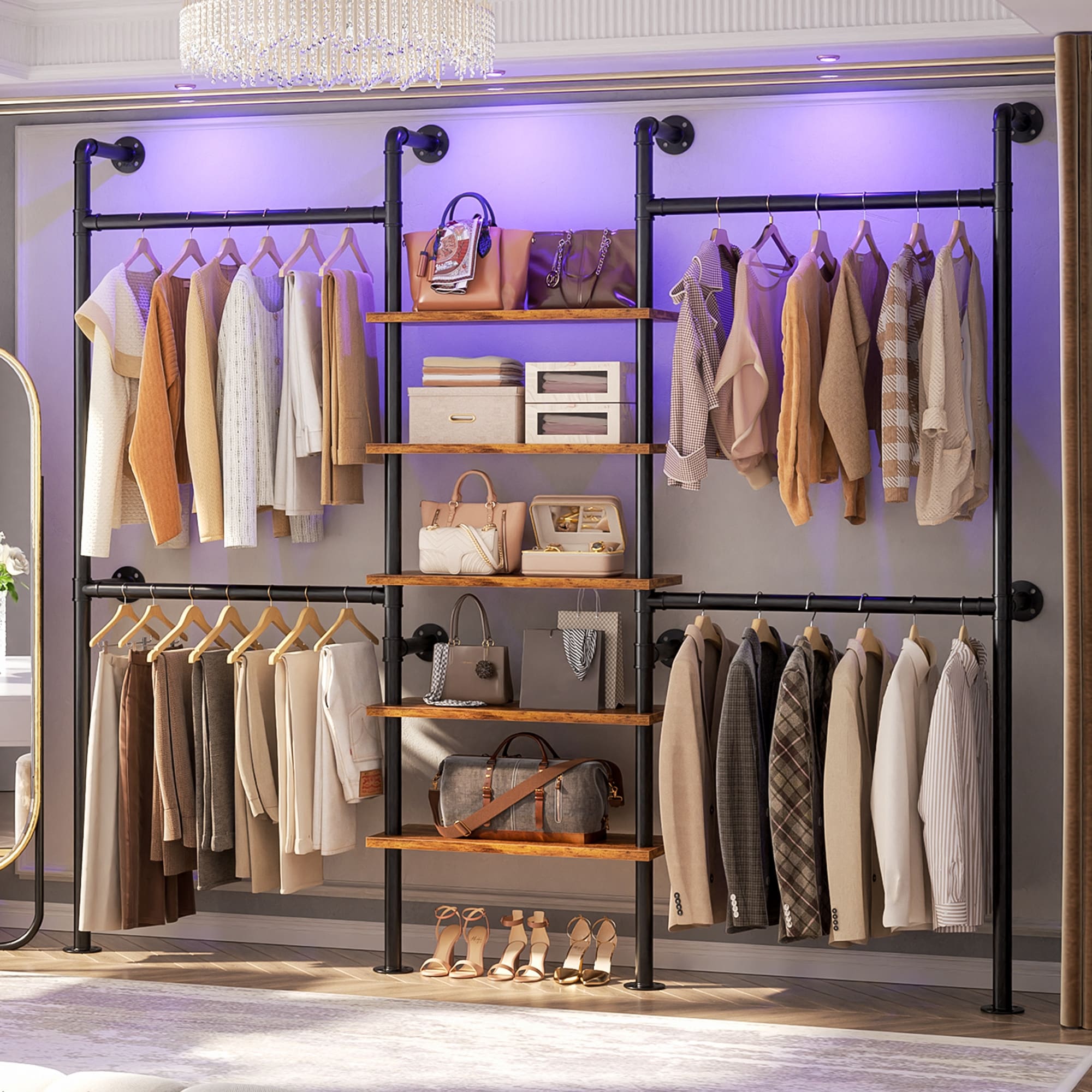 77'' Industrial Pipe Clothing Rack with 5-Tier Shelves, Reversible Closet Organizer System Garment Racks for Hanging Clothes